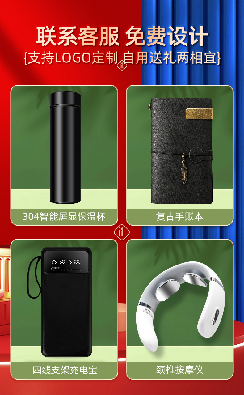 temperature control cup bracelet luminous power bank neck massager eye care machine five-piece set white