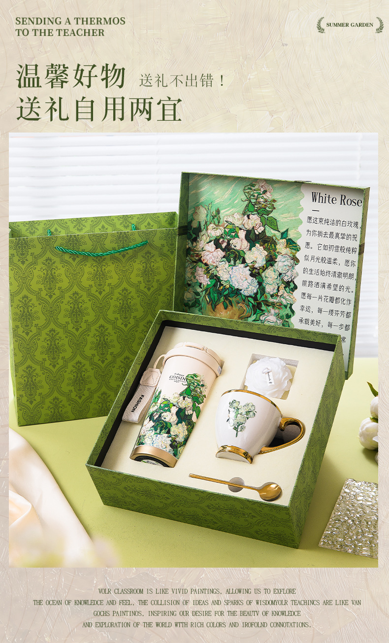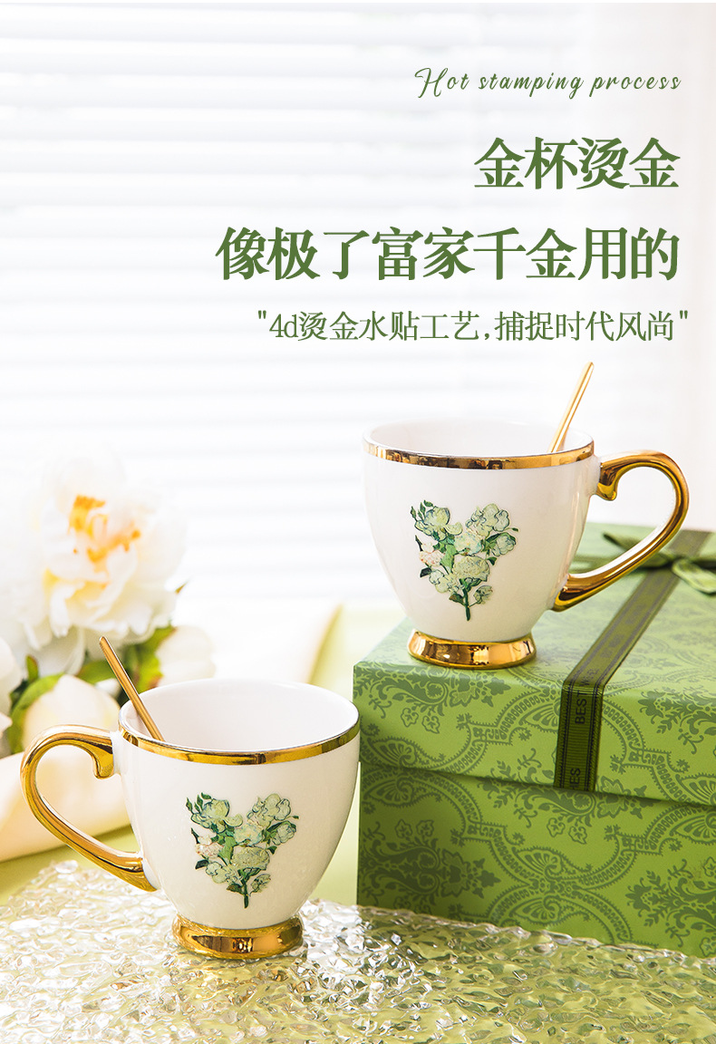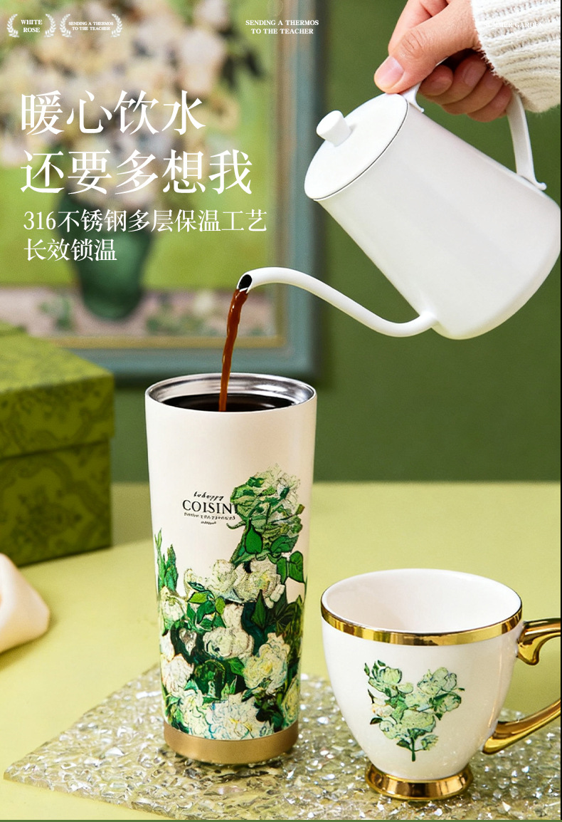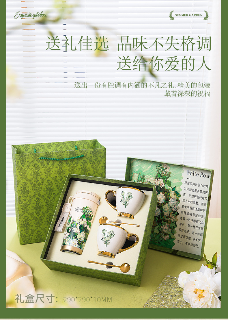 white rose-double coffee cup set