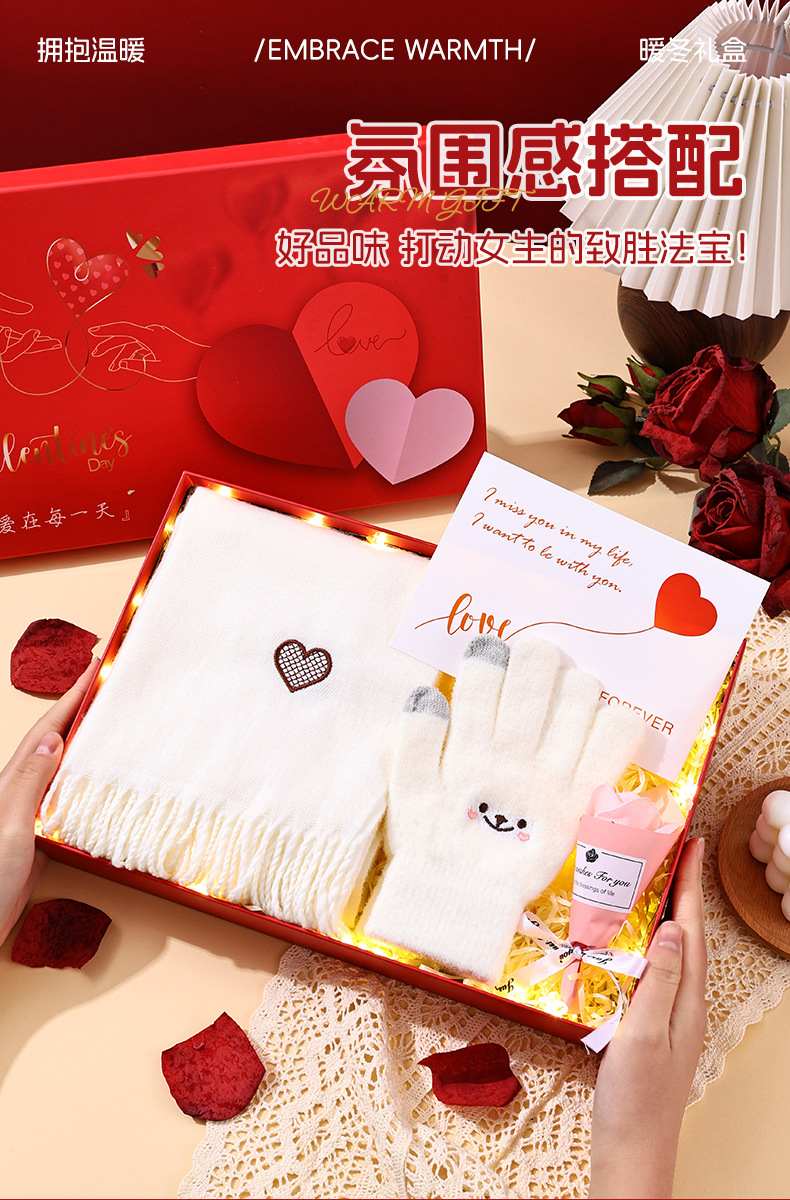 crown [luxury] scarf + gloves + bouquet + warm light +6 cards + raffia + gift box gift bag