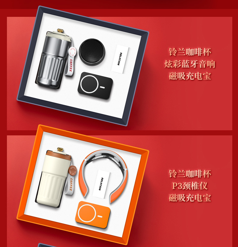 [red three-piece set] coffee cup + neck massager + 3c wireless power bank/with flip gift box