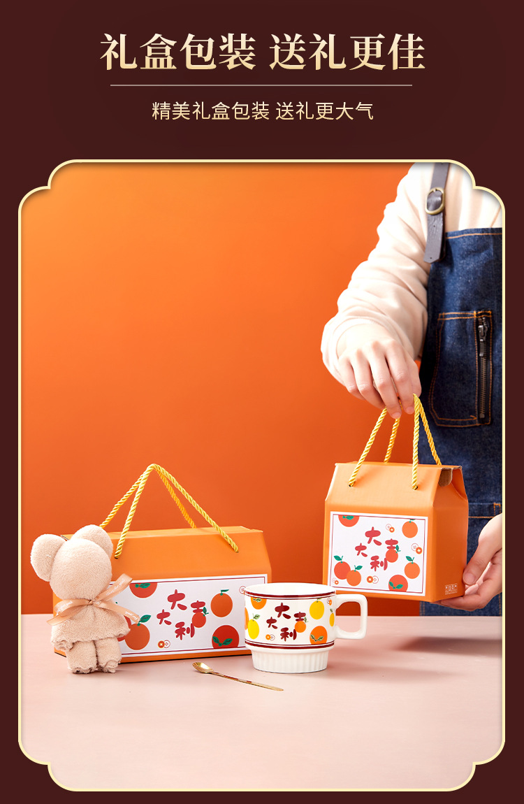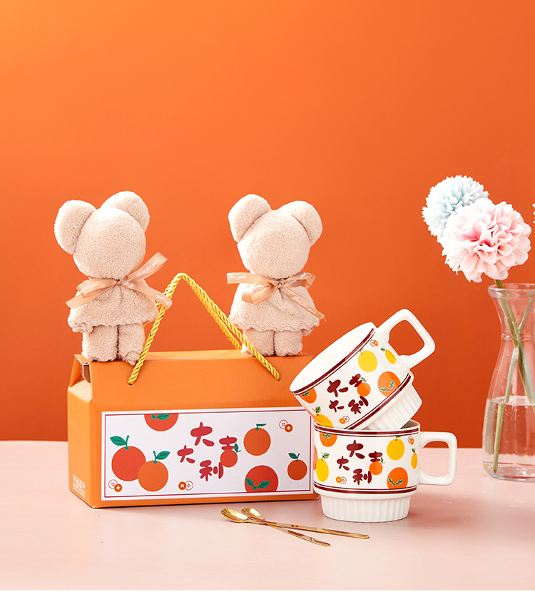 lucky single cup + spoon + towel bear (portable gift box)