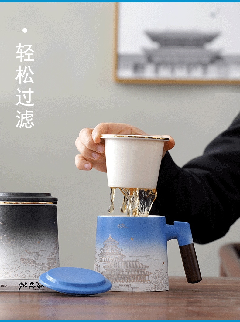 national fashion blue cup + gift box gift bag