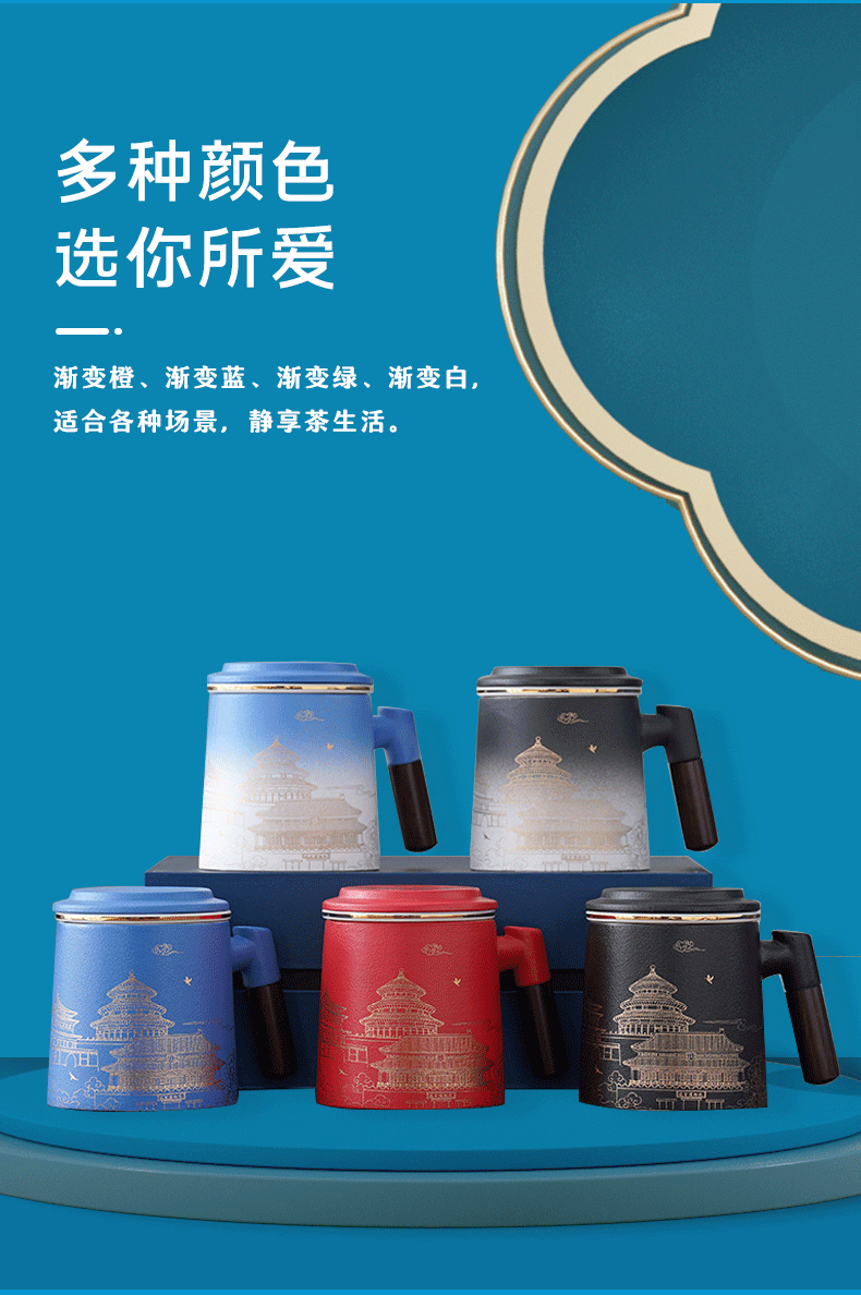 national fashion gradient blue cup + gift box gift bag