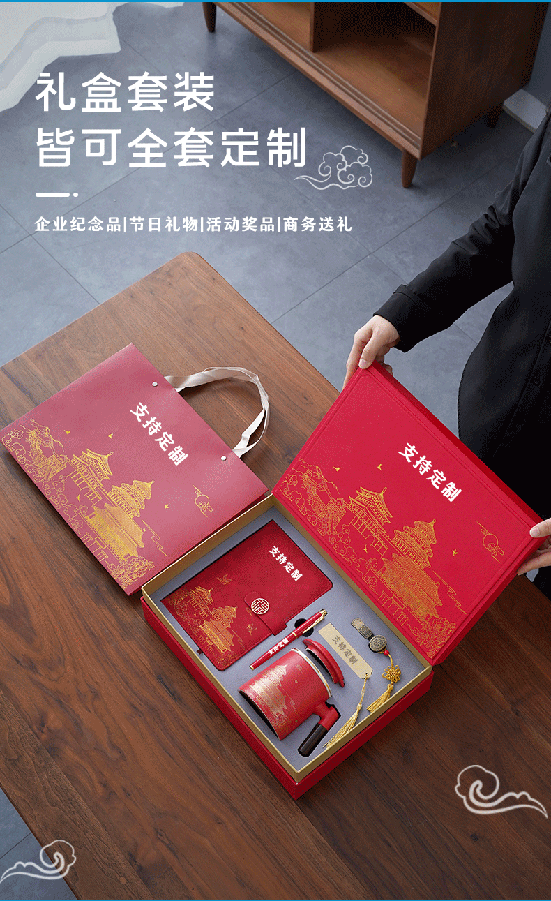 national fashion four-piece red cup + pen + bookmark + a5 notebook + gift box gift bag