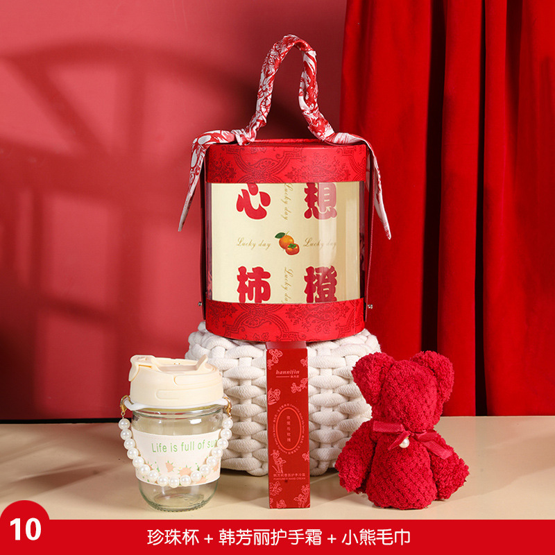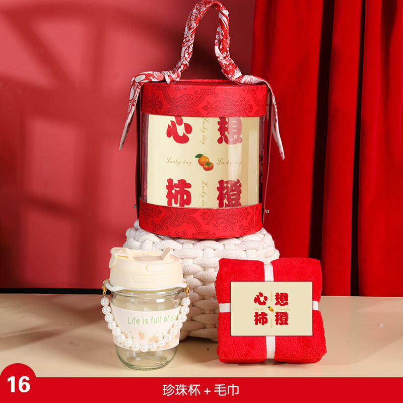 thermos cup + persimmon jar + towel