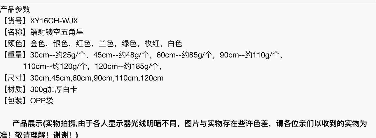 120cm golden five-pointed star