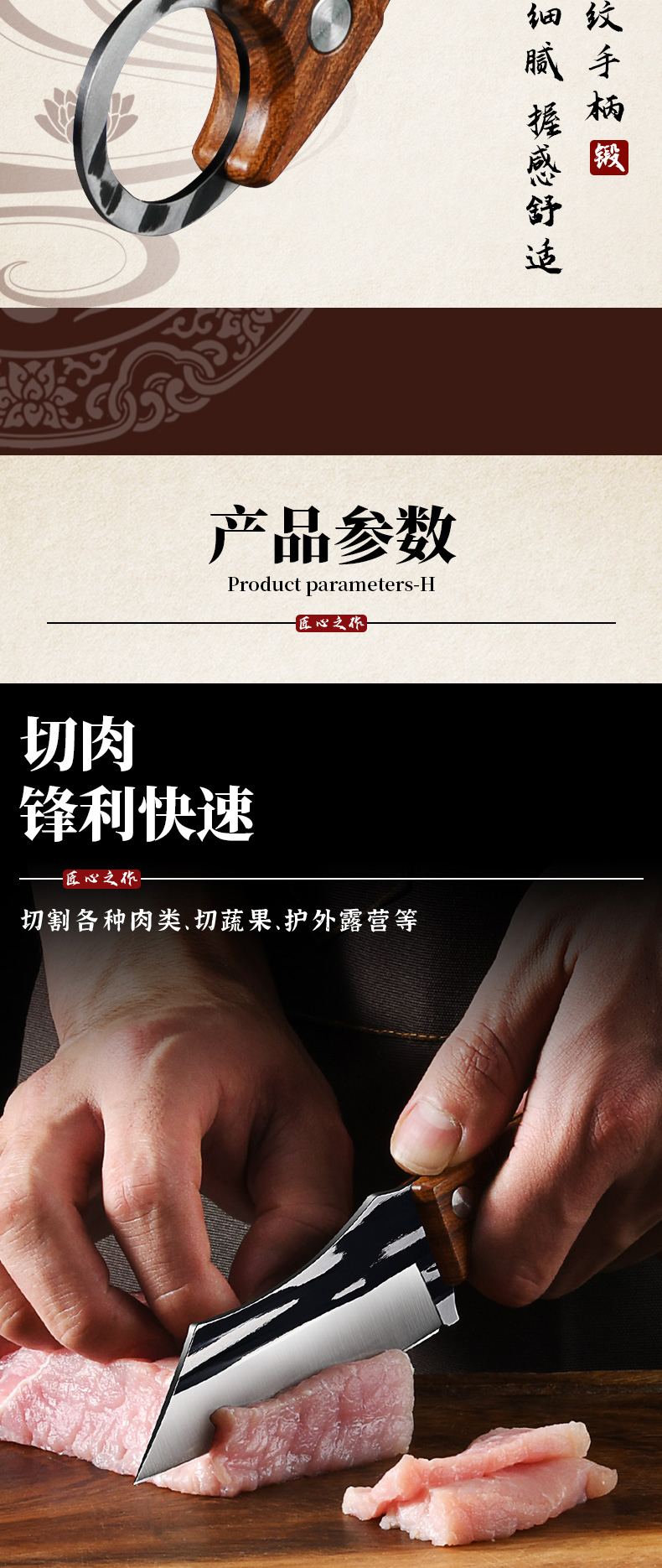 forging sever knife [easy peeling meat]-below 60 °-9.8 cm-108mm