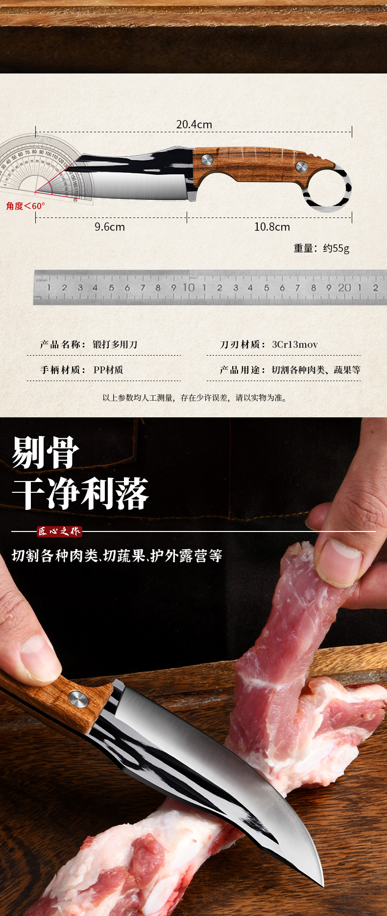 forging boning knife [fast and accurate knife entry]-below 60 °-9.8 cm-108mm