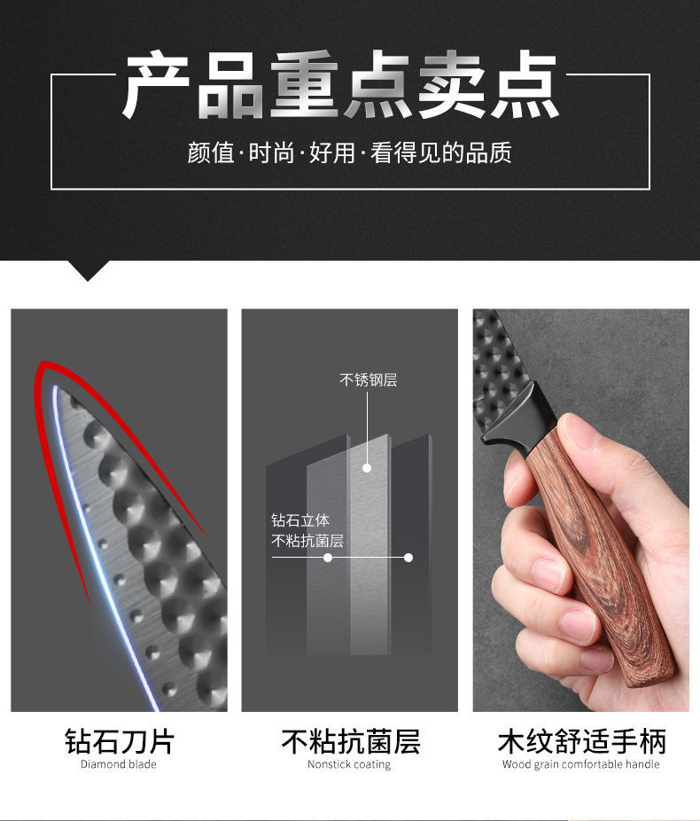 embossed non-stick finish black knife three-piece set