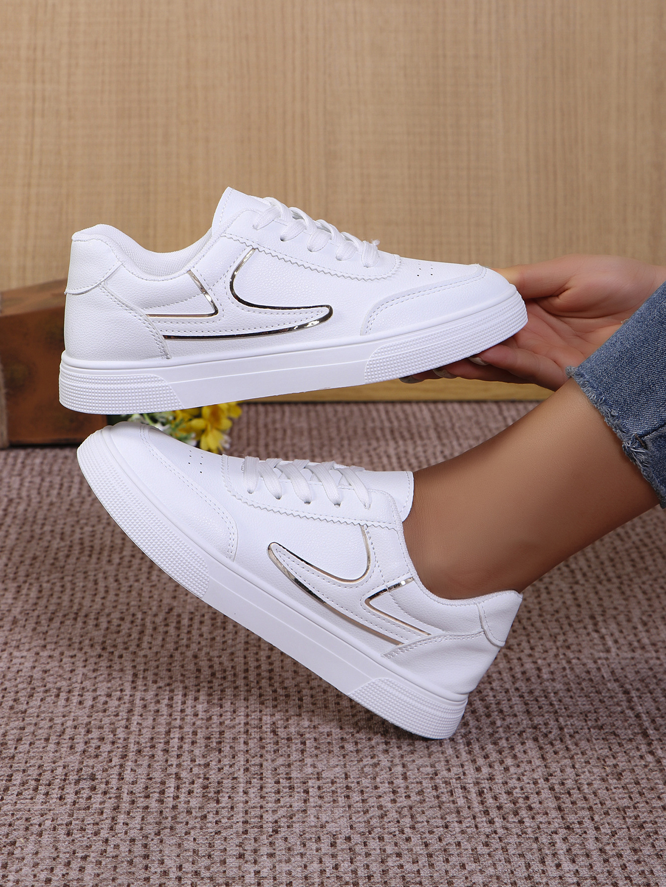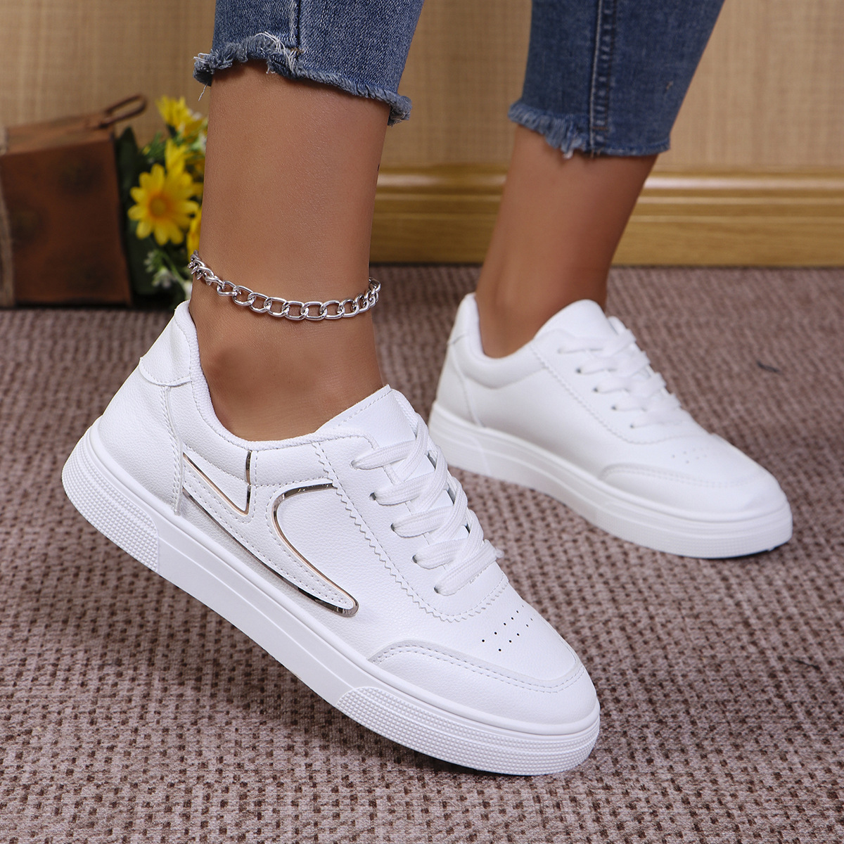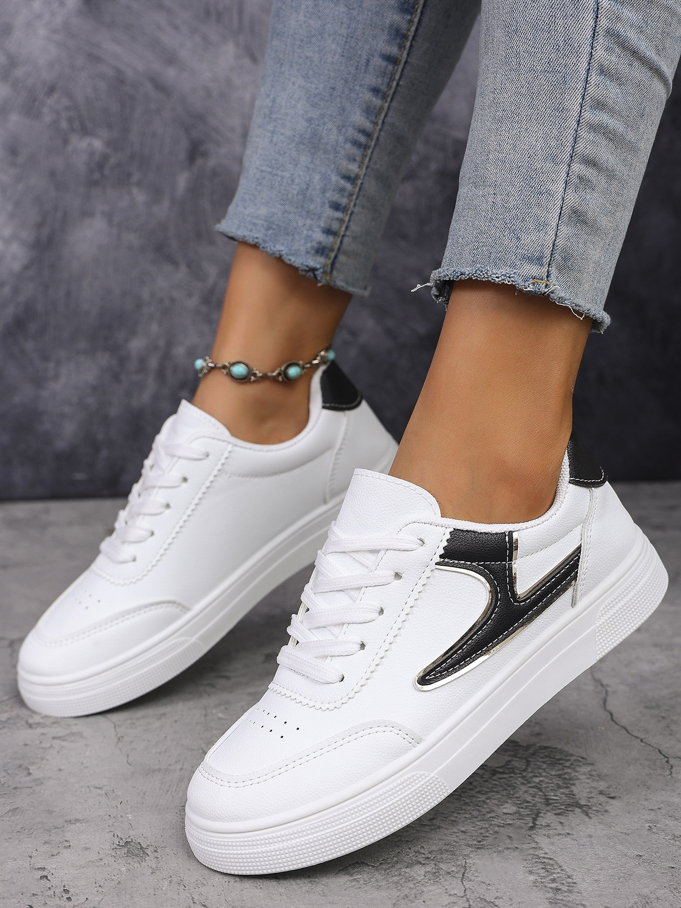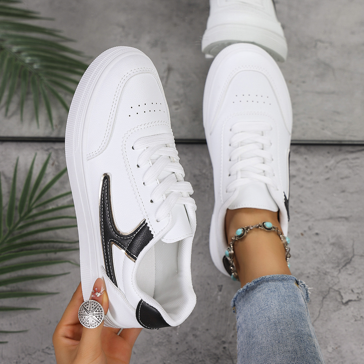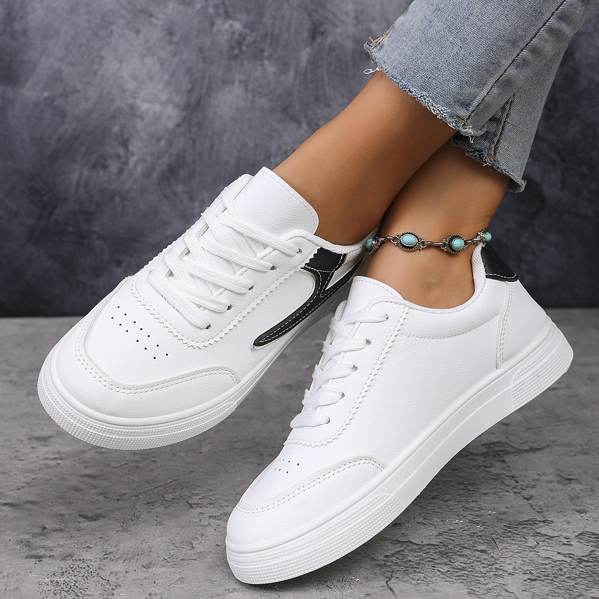 2025 spring and autumn foreign trade large size women's shoes white shoes board shoes low-top shoes round toe sneakers color matching fashion