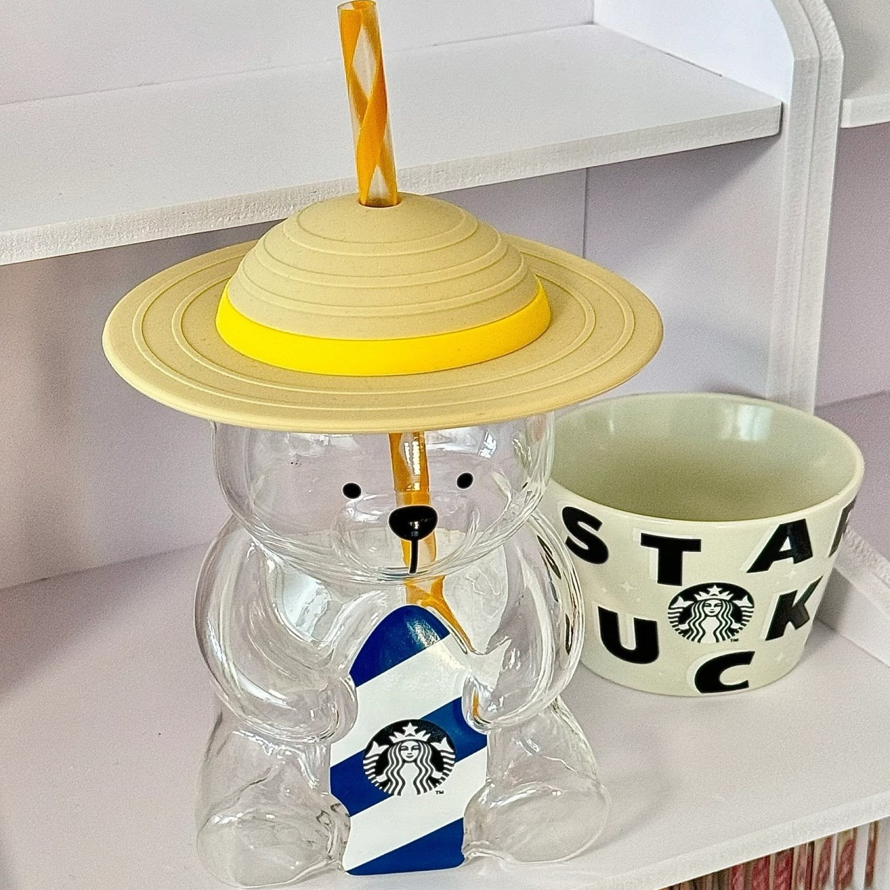 straw hat bear cup with straw