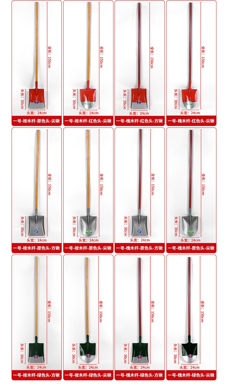 no.1-eucalyptus pole-green head-square point shovel