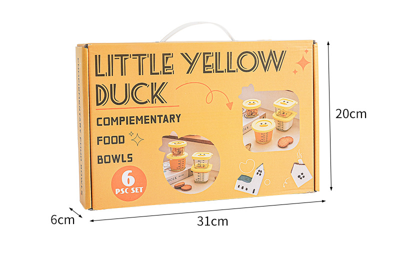 small yellow duck tempered solid food bowl 6-piece set color box package-convex square scale * 3 + convex round scale * 3
