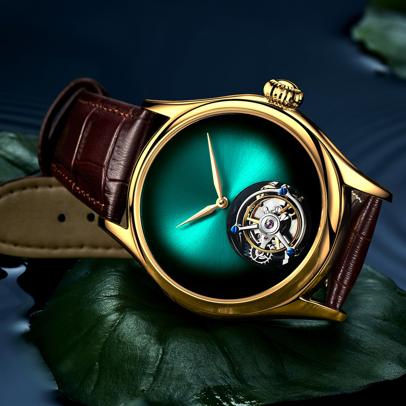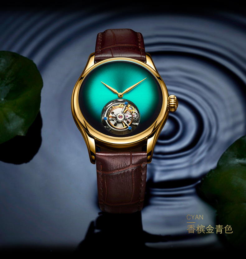 7019 silver case green surface-manual tourbillon
