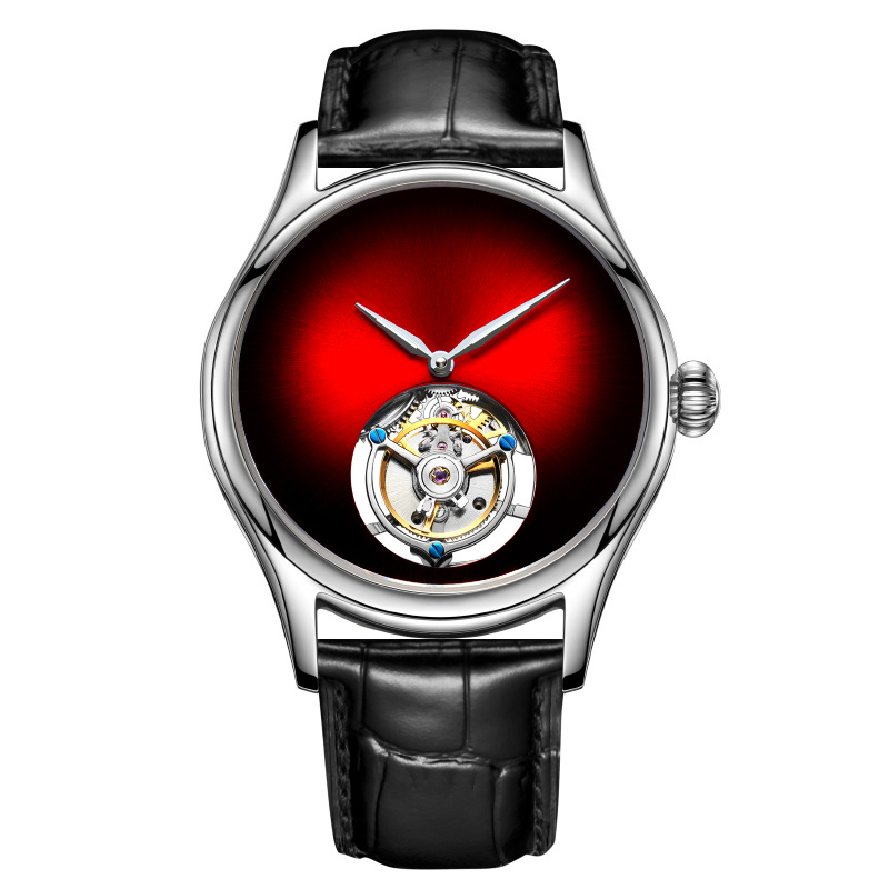 7019 silver case red face-manual tourbillon