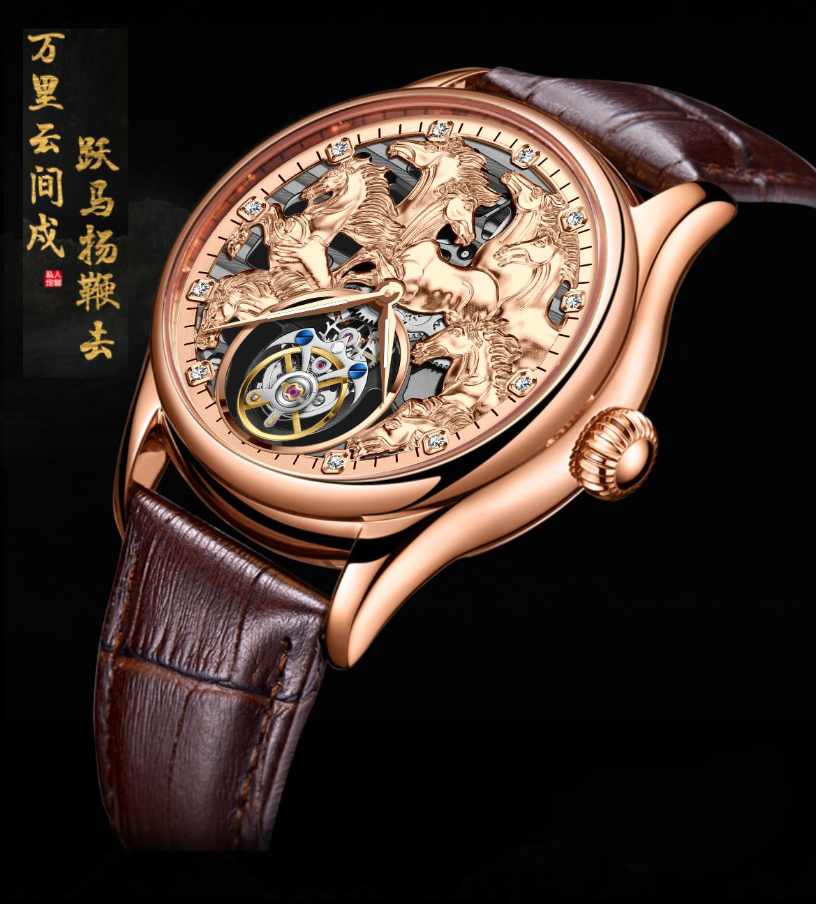 7083 belt rose gold-manual tourbillon machinery