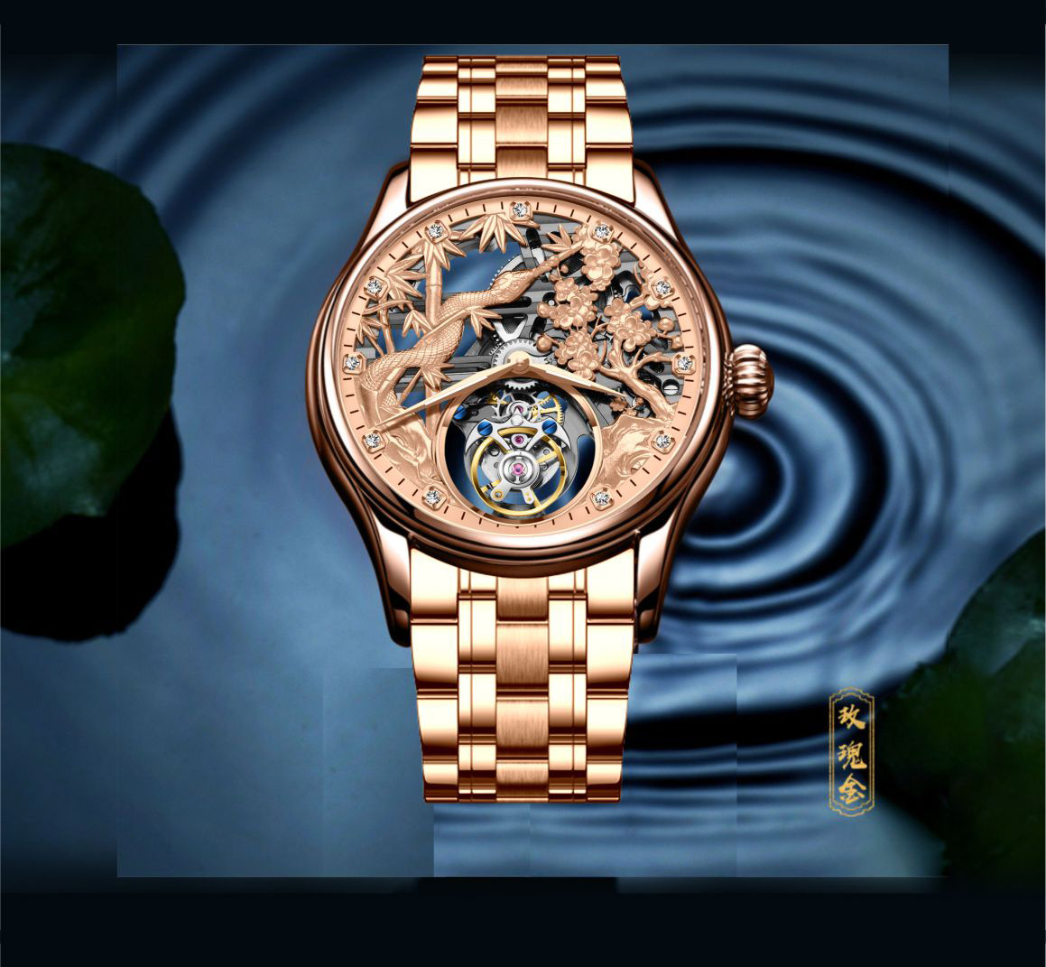 7073 steel band rose gold-manual tourbillon machinery