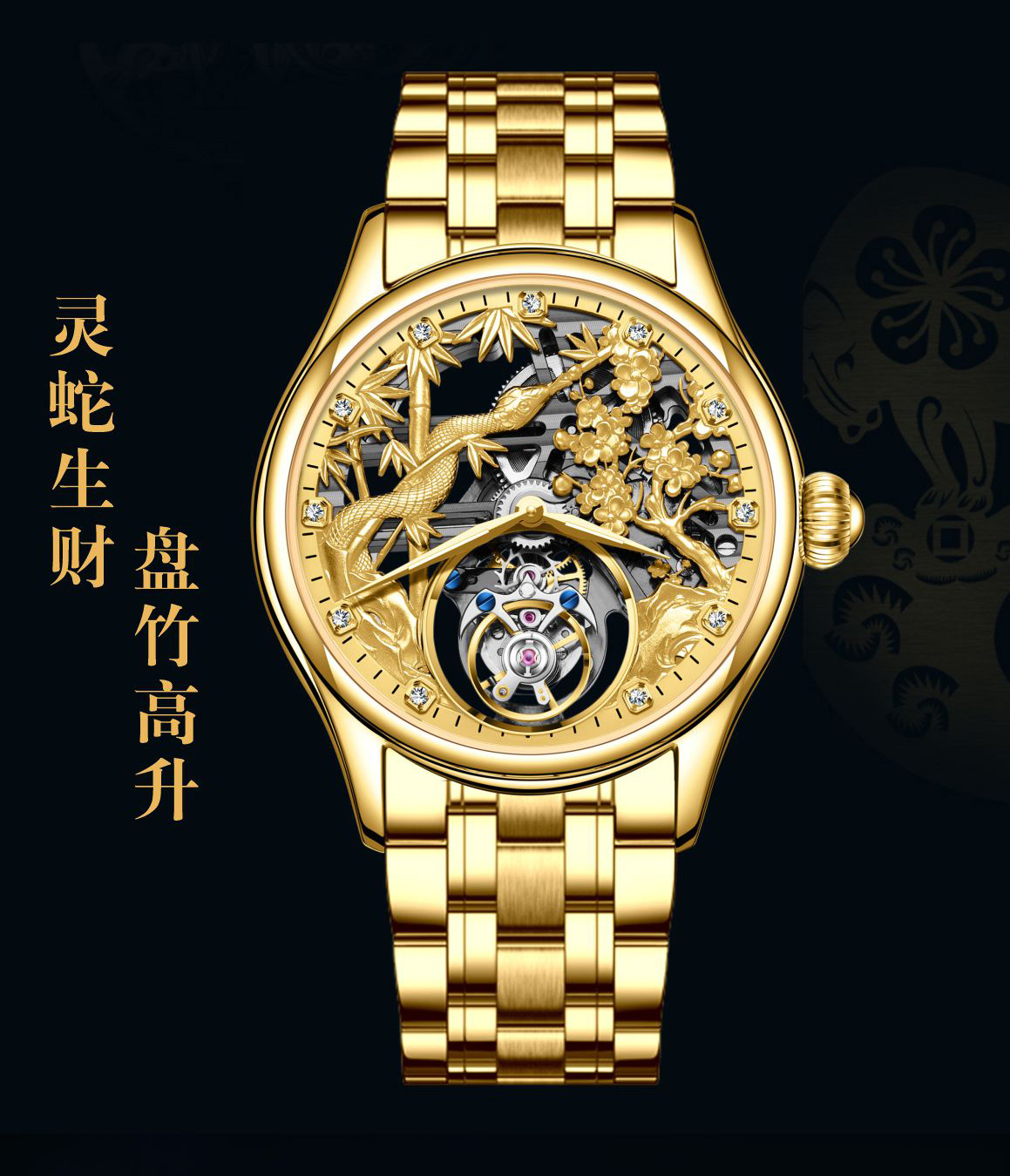 7073 steel belt golden-manual tourbillon machinery