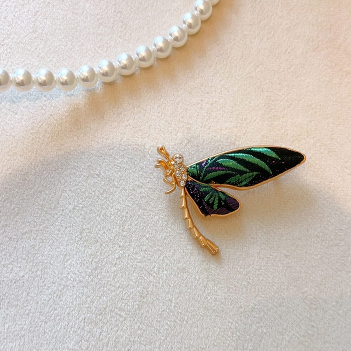 purple green dragonfly breastpin