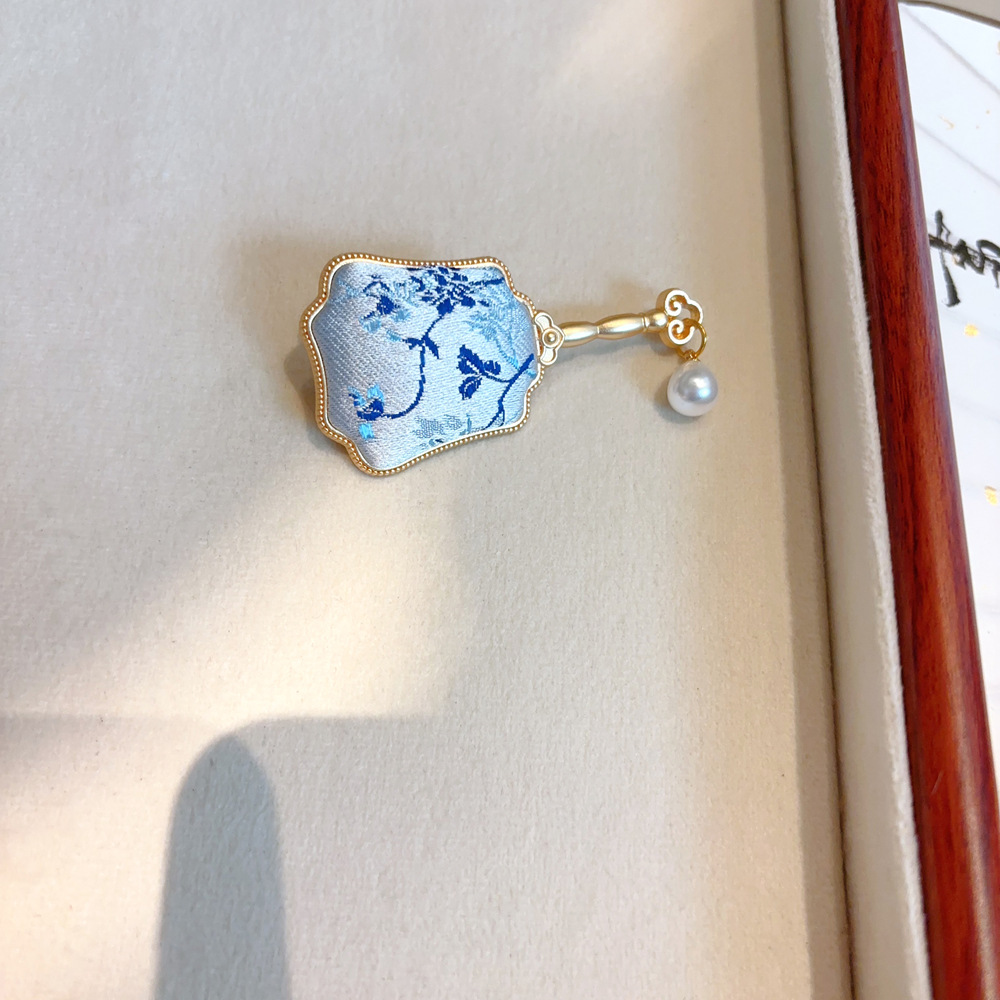 blue fan brooch
