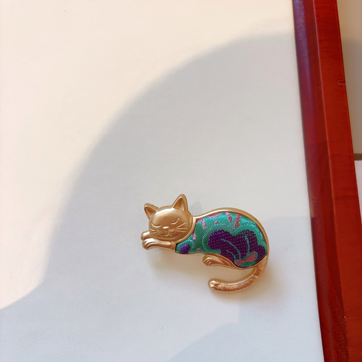 green kitty brooch