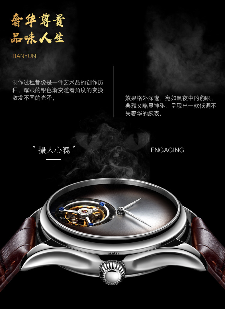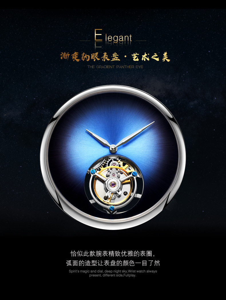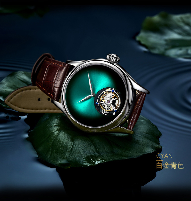 luxury silver case men's table real tourbillon mechanical watch leopard eye red blue green gray waterproof genuine leather watch wrist watch