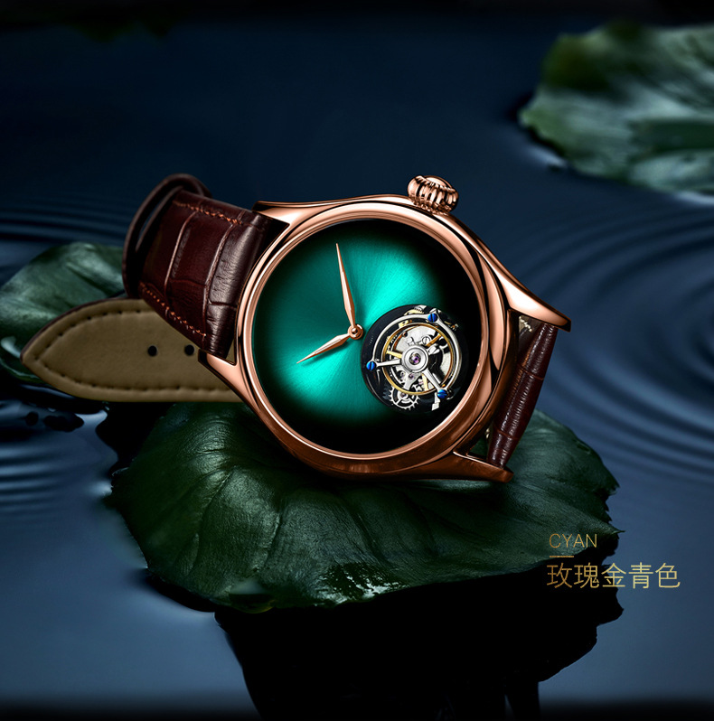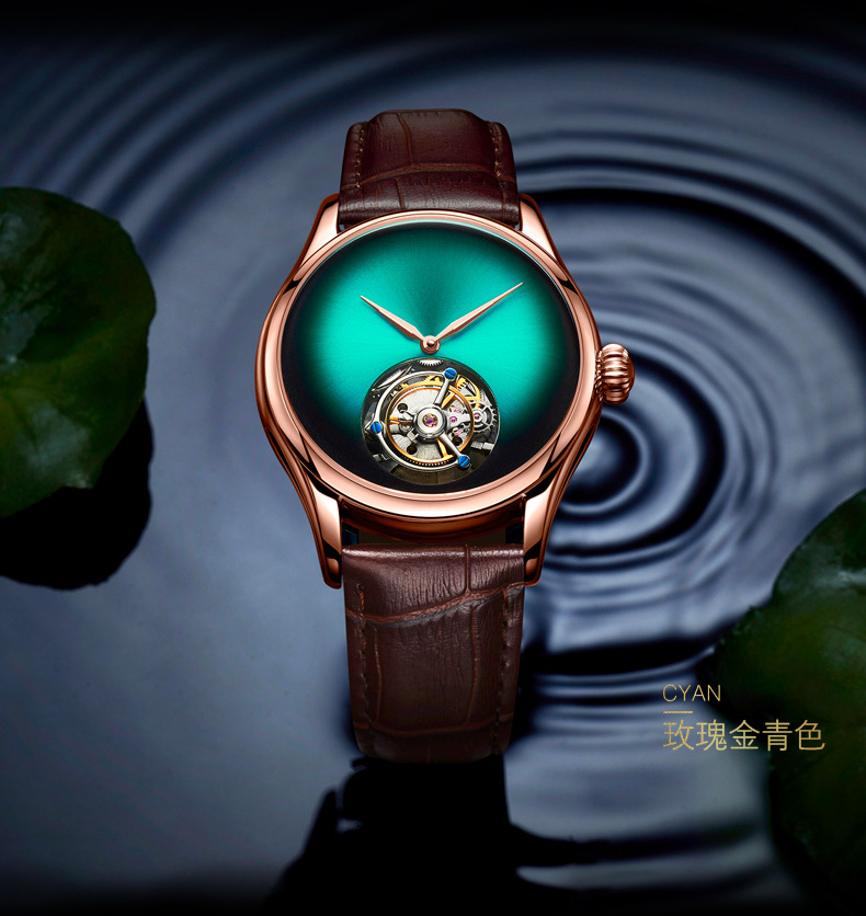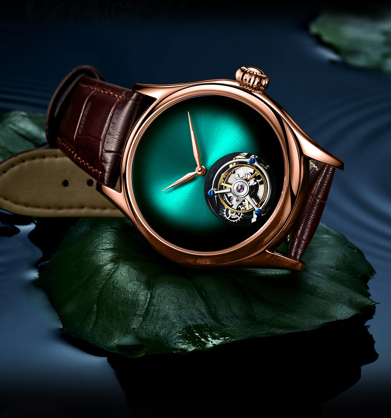 7019 silver case green surface-manual tourbillon