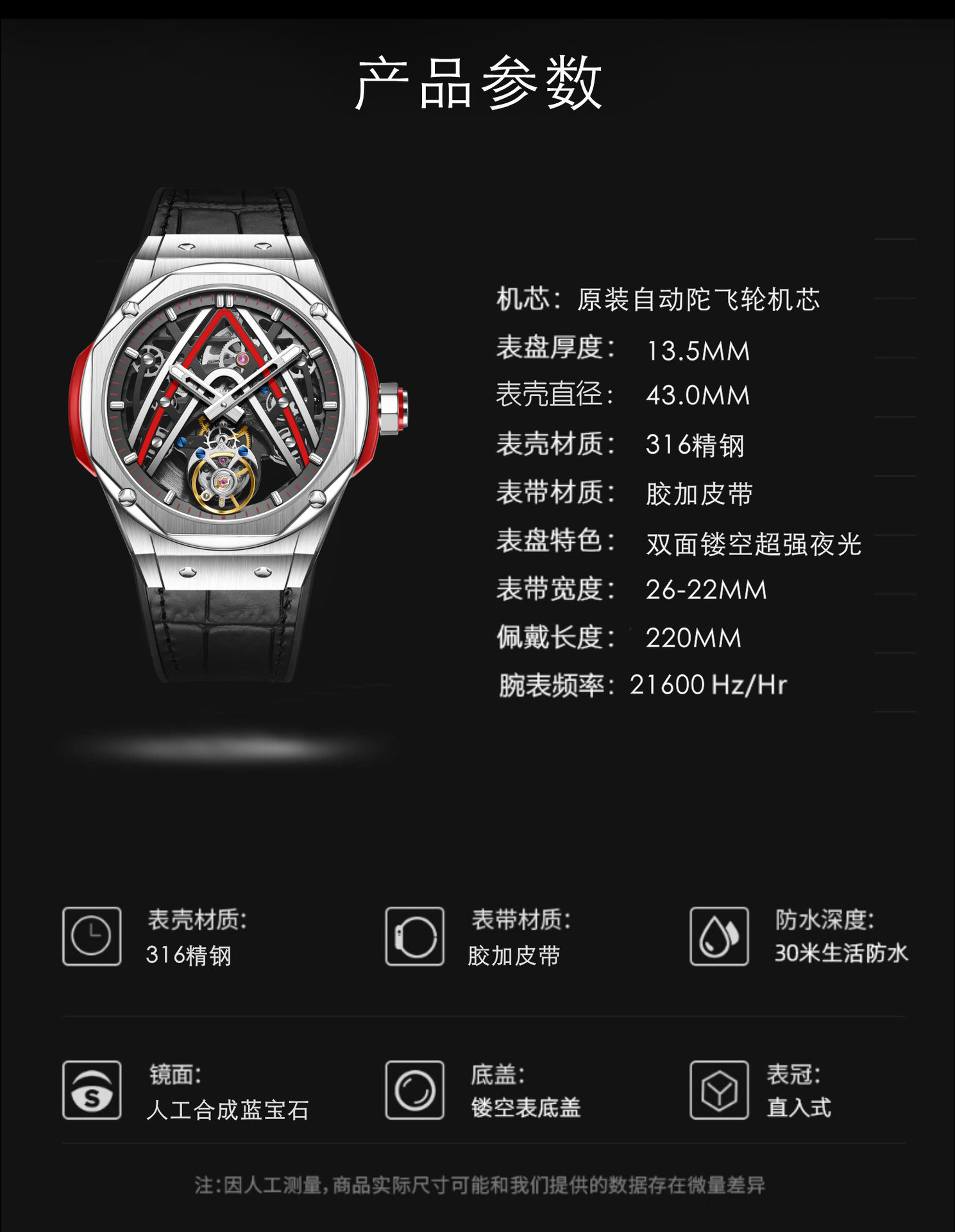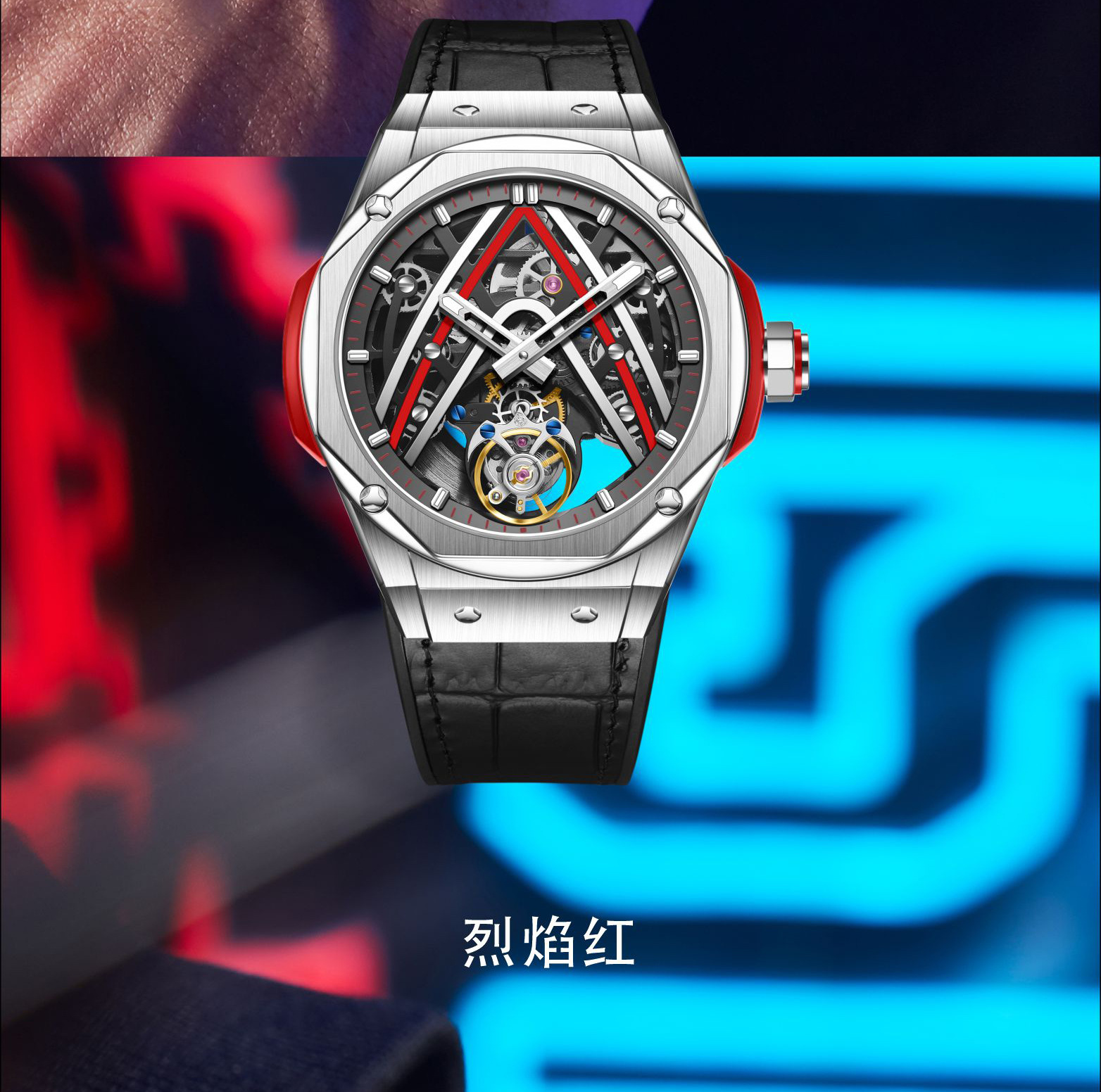 7070 flame red-automatic tourbillon machinery