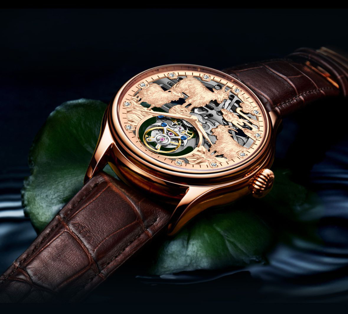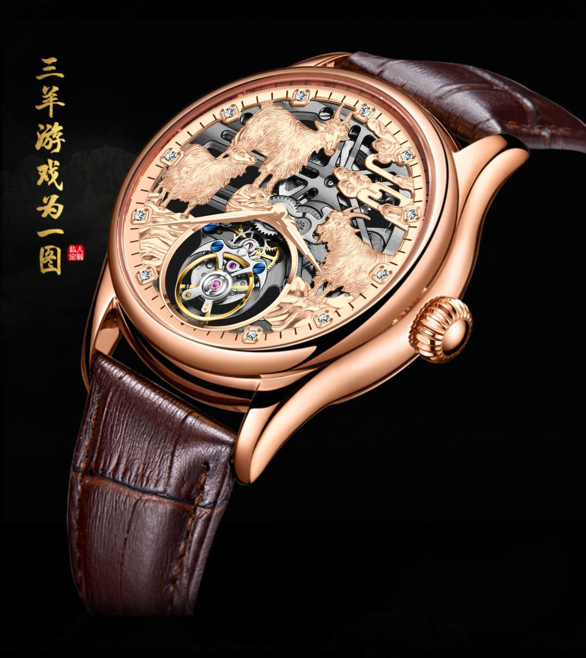 7081 belt rose gold-manual tourbillon machinery