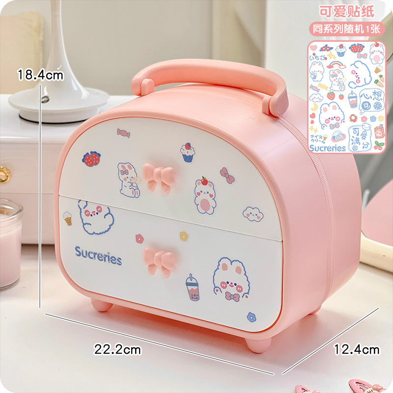 pink cute jewelry storage box + running rabbit stickers