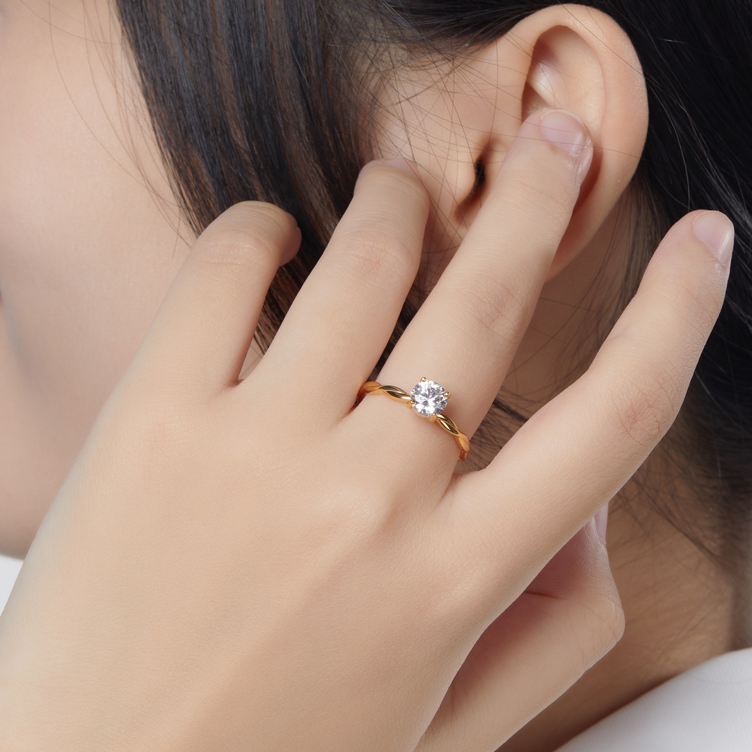 korean drama goddess same diamond ring twist shape simple advanced design shining zircon eye-catching fashion hundred