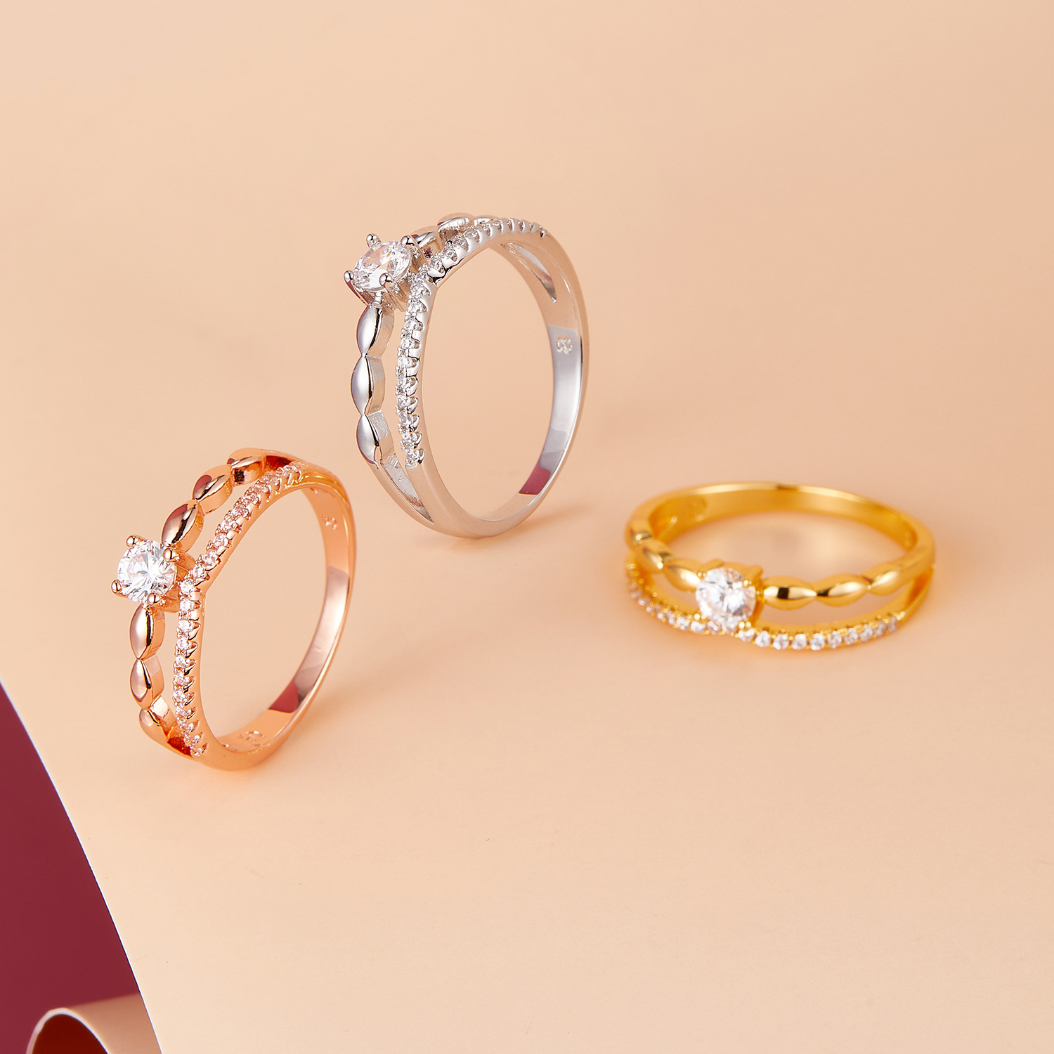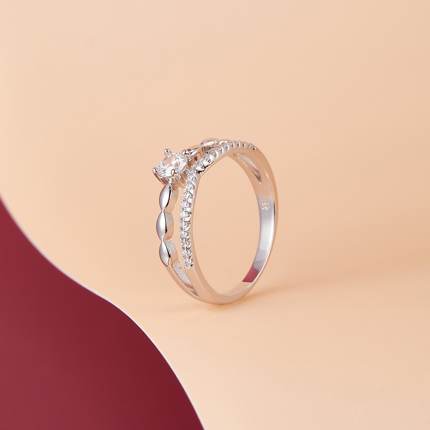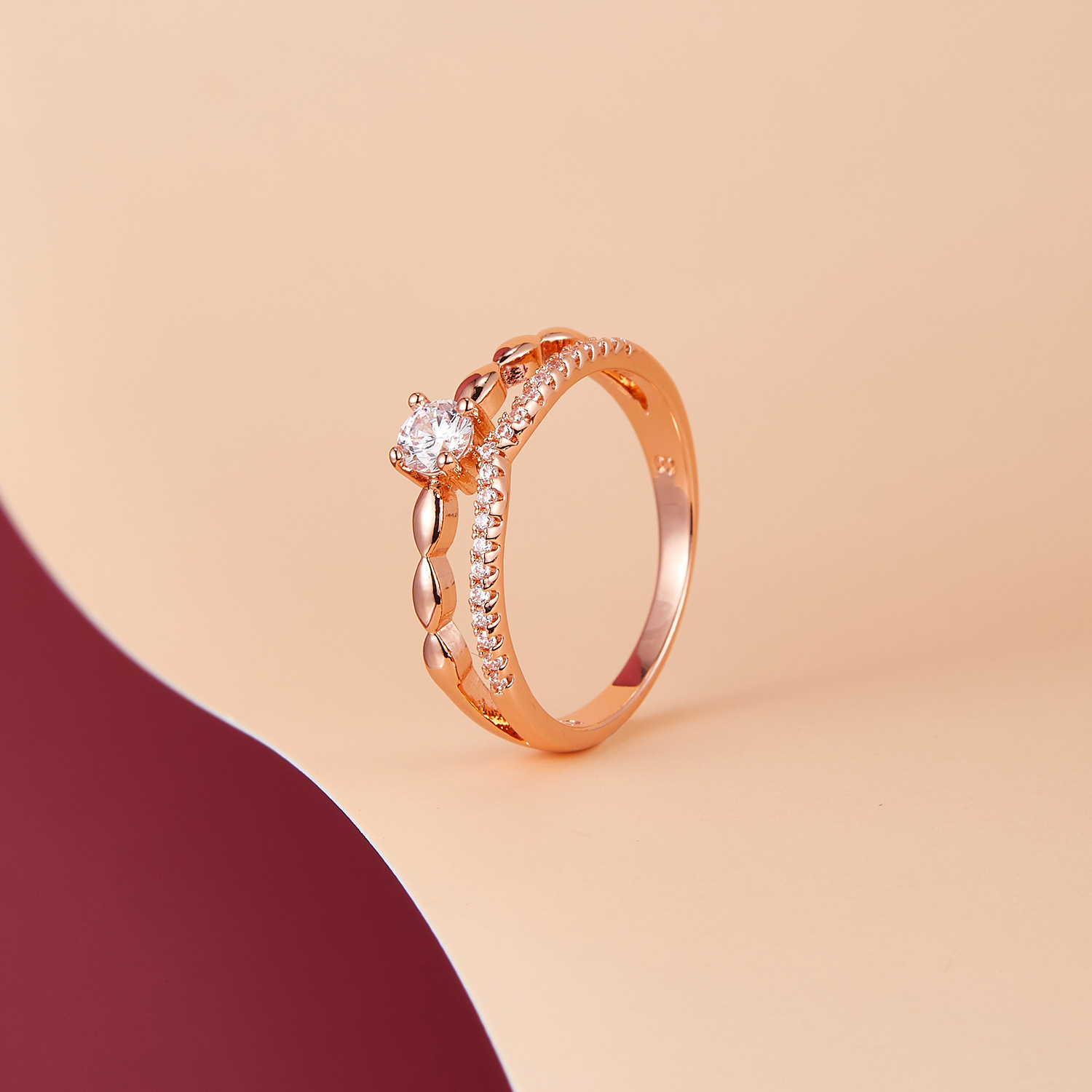 micro inlaid zircon simple bracelet ring super flash simple all-match twin cold style trendy all-match elegant fashionable double layer