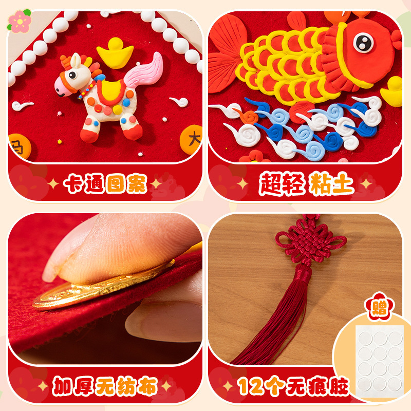 diy clay fu character pendant-five blessings