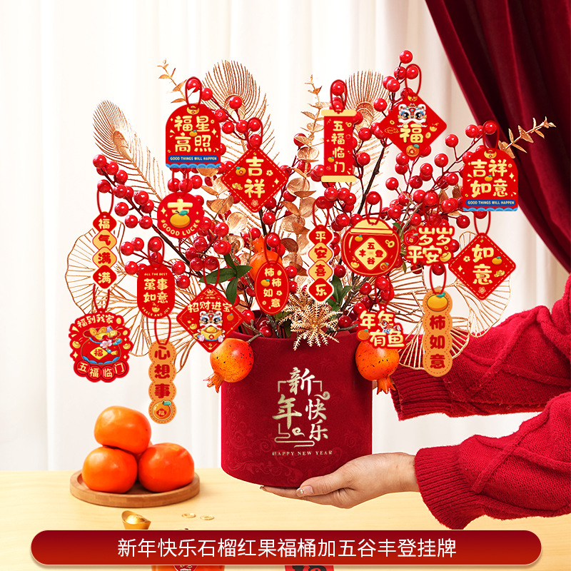 new year pomegranate blessing bucket + grain fengdeng listing