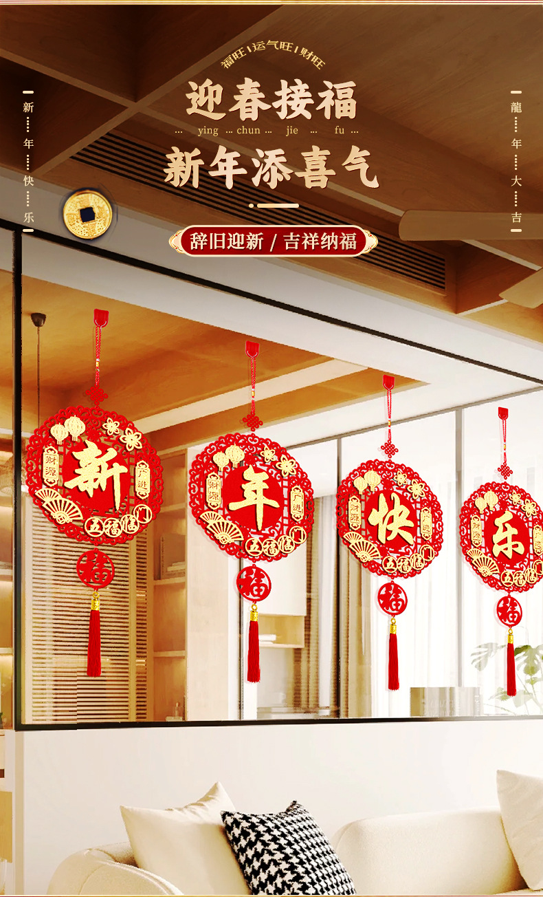 (4 pieces) happy new year pendant round