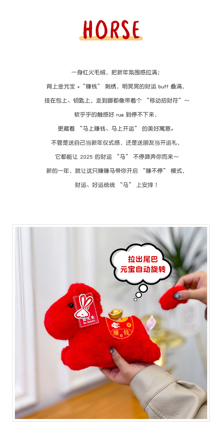 2026 year of the horse mascot doll red goods pendant gift zodiac yuan bmw tail pony doll child doll