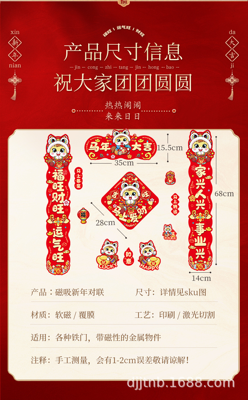 magnetic couplet set [happy new year] does not hurt the door without trace