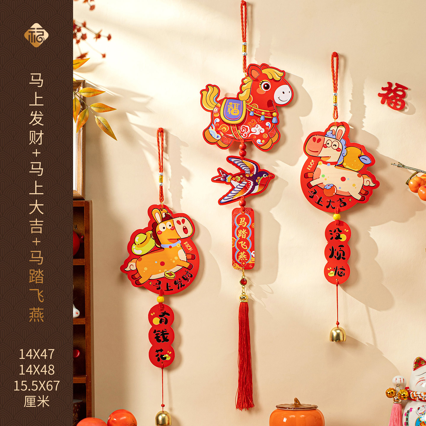 [get rich immediately + get lucky immediately + horse stepping on a flying swallow] pvc expansion sheet) pendants (3 in total)