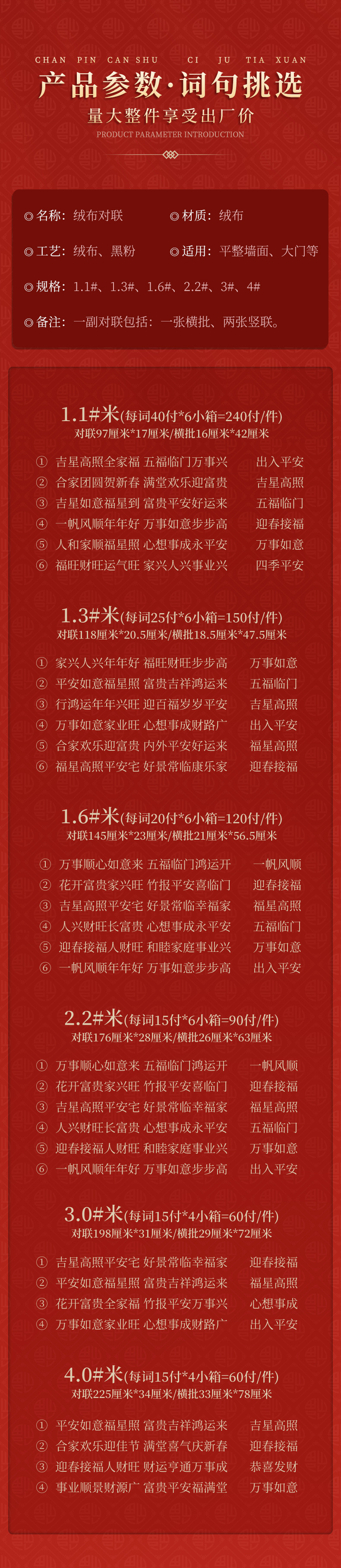 | 1.1m family reunion he xin spring full hall of joy welcome wealth | CN¥ 10.74 | 1000 pair available |