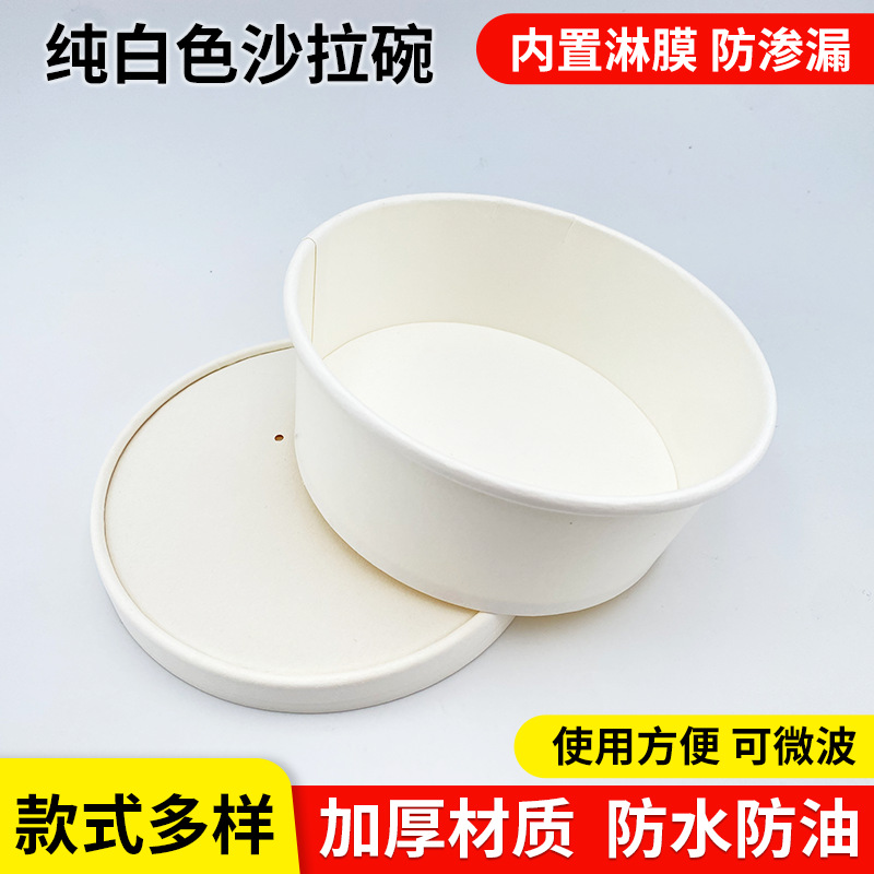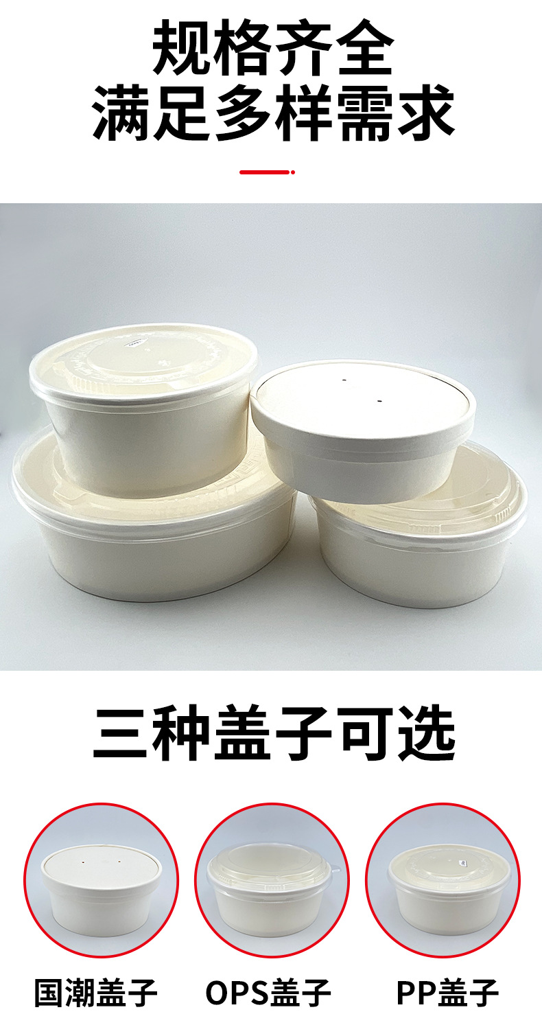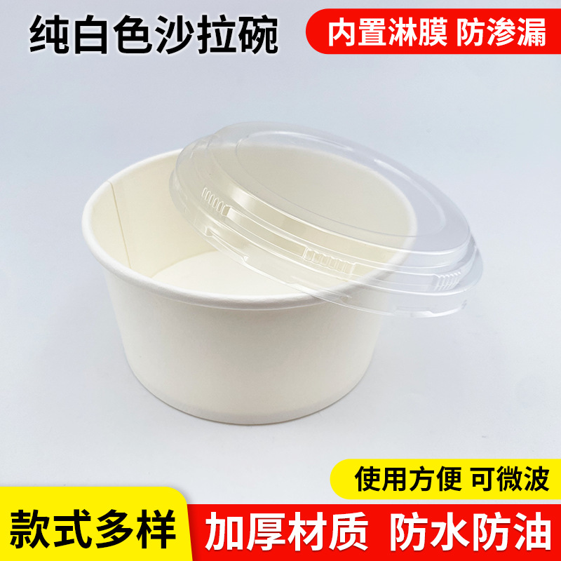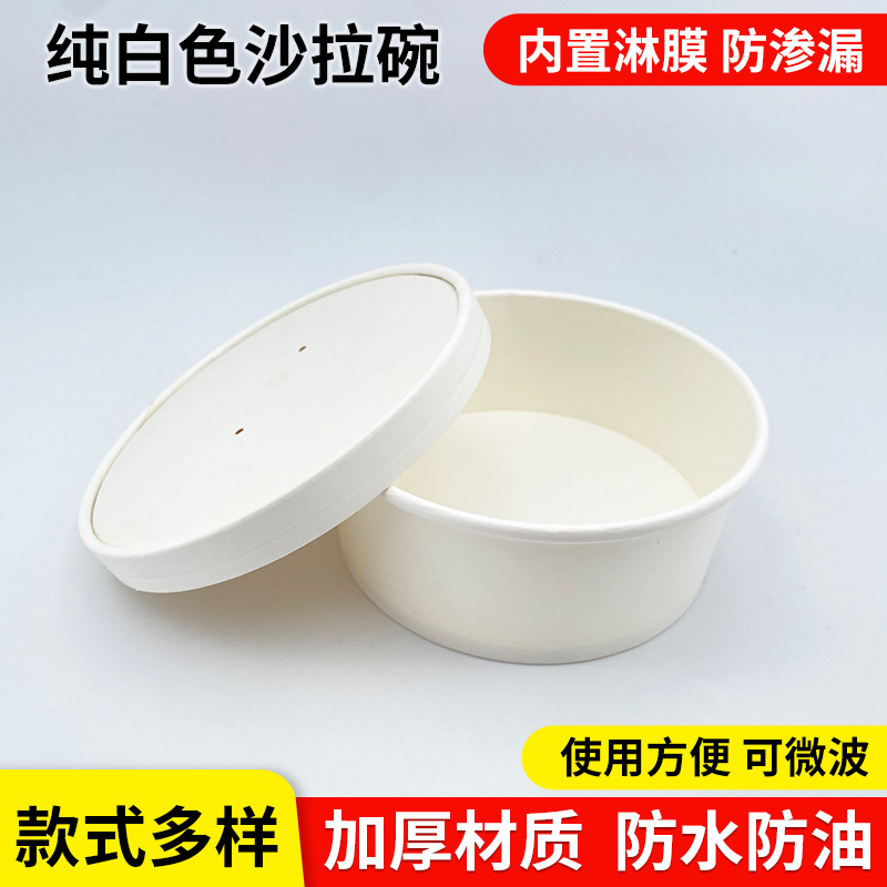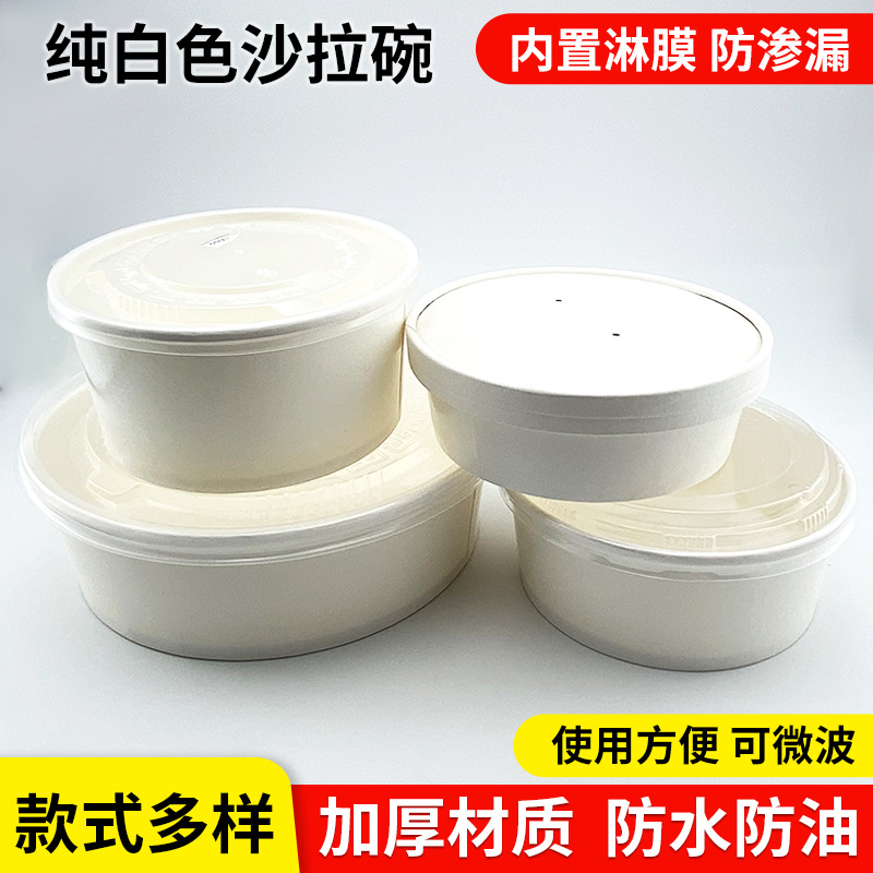round pure white paper bowl packaging thickened food grade salad fruit disposable with lid takeaway lunch box commercial