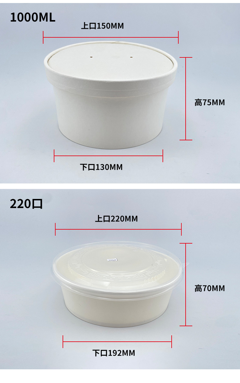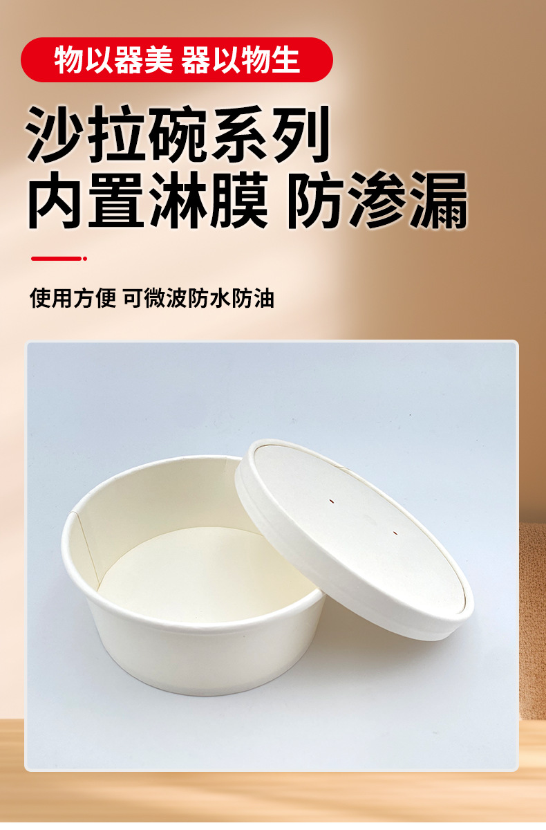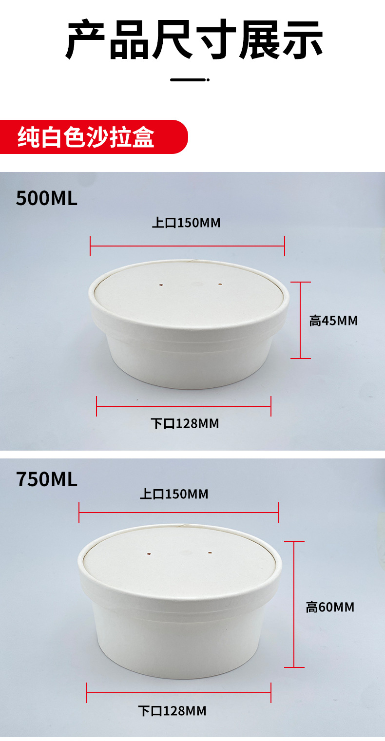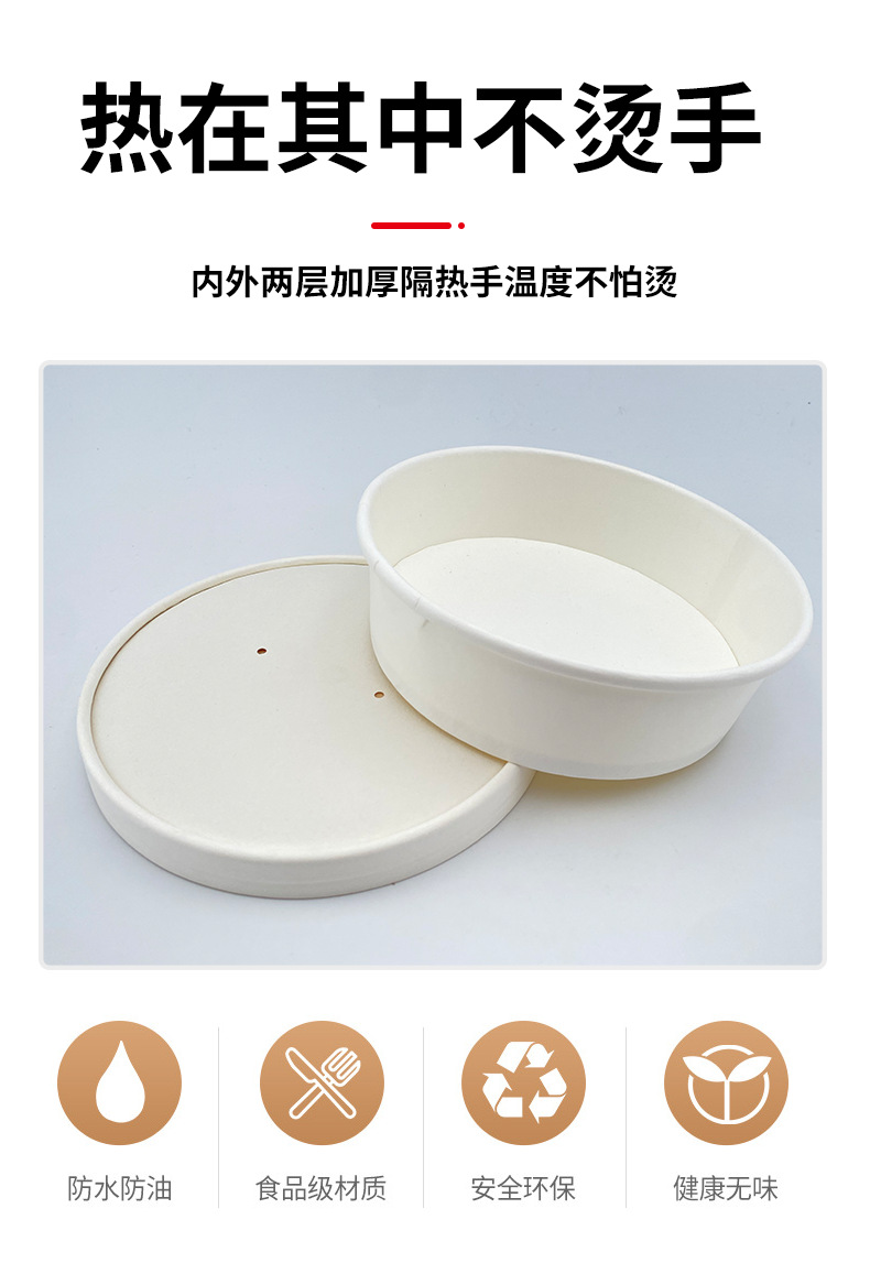 round pure white paper bowl packaging thickened food grade salad fruit disposable with lid takeaway lunch box commercial