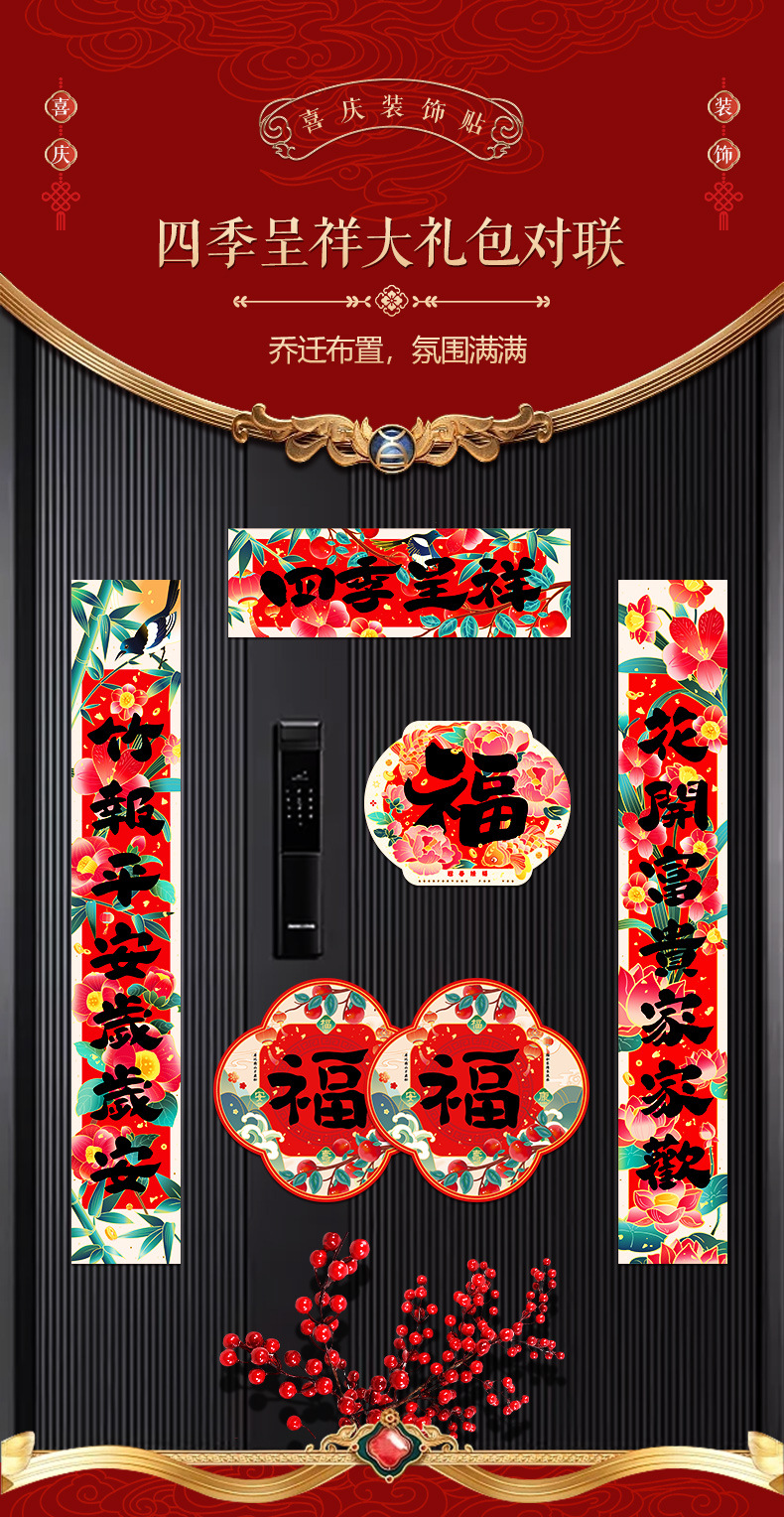 four seasons chengxiang 12-piece set/red envelope + red pocket for lucky money +10 window flowers