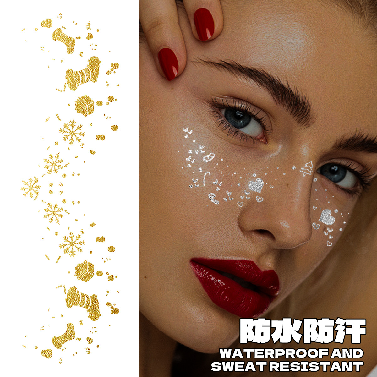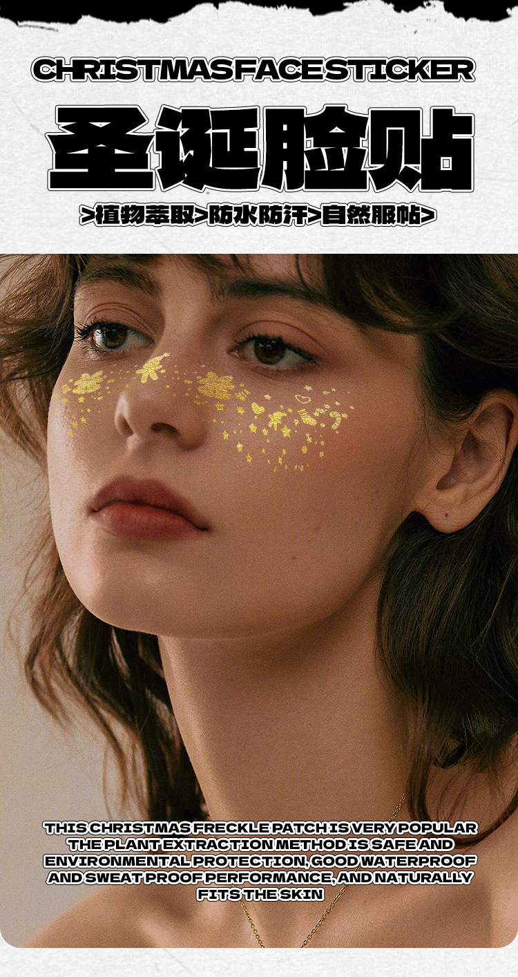 new christmas bronzing and silver plating stickers cross-border face pasters party makeup tattoo sticker new year face stickers