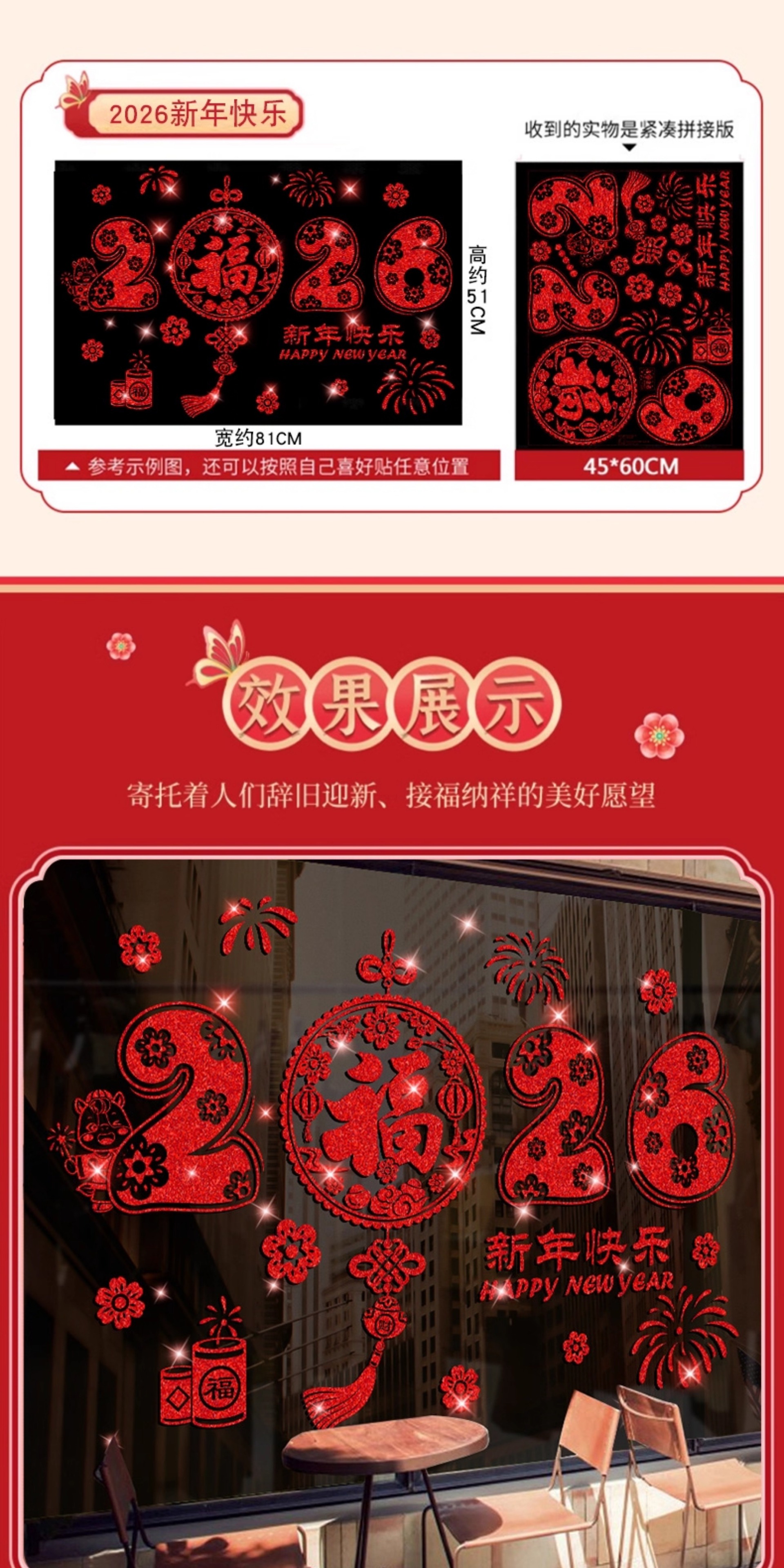 42. new year blessing full hall [electrostatic glitter, double-sided same color]]