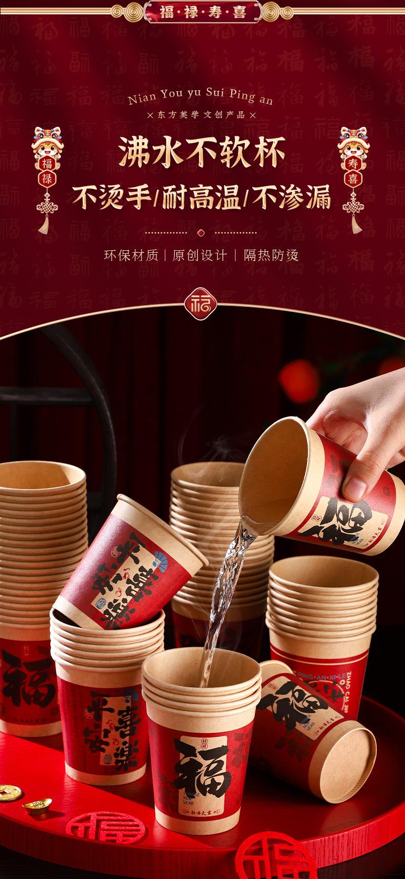 [fu + hair (red)] new year paper cups (50) leak-proof thickening
