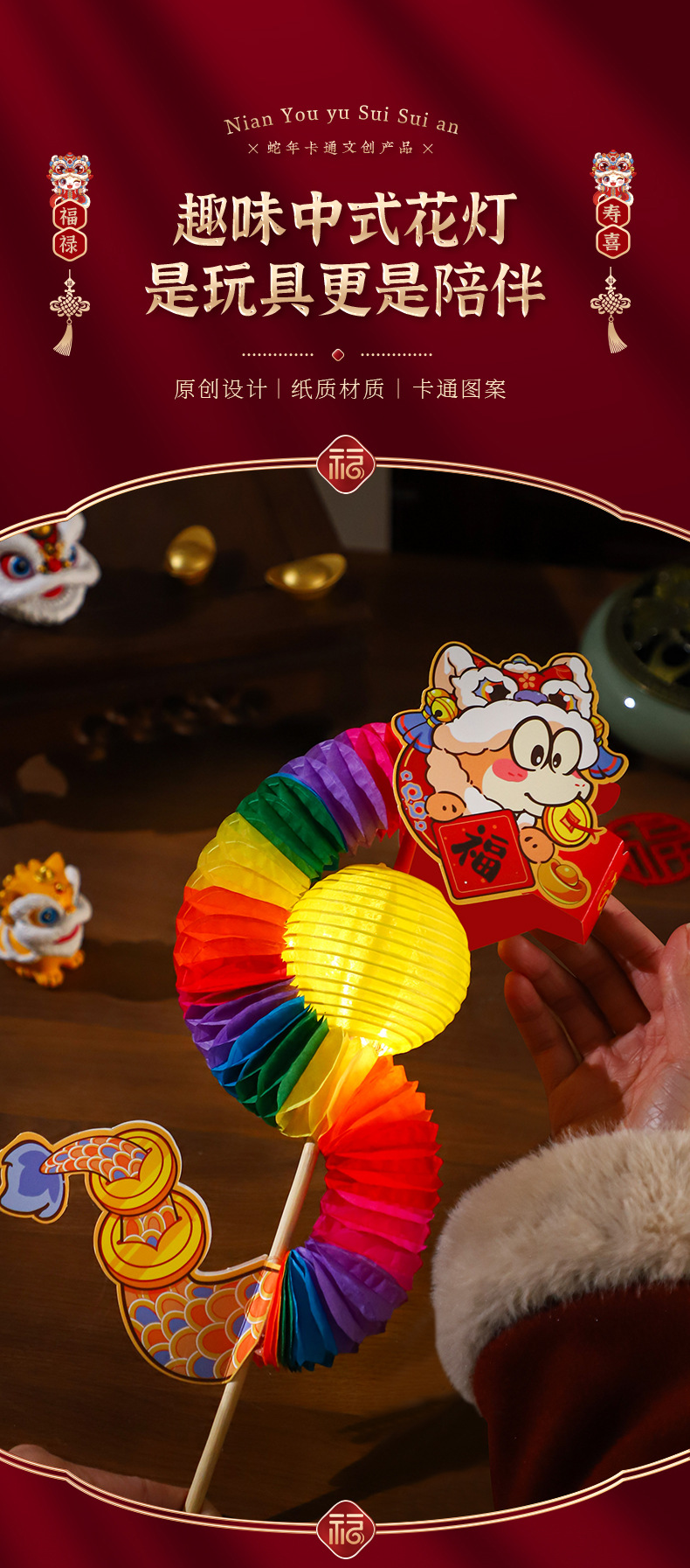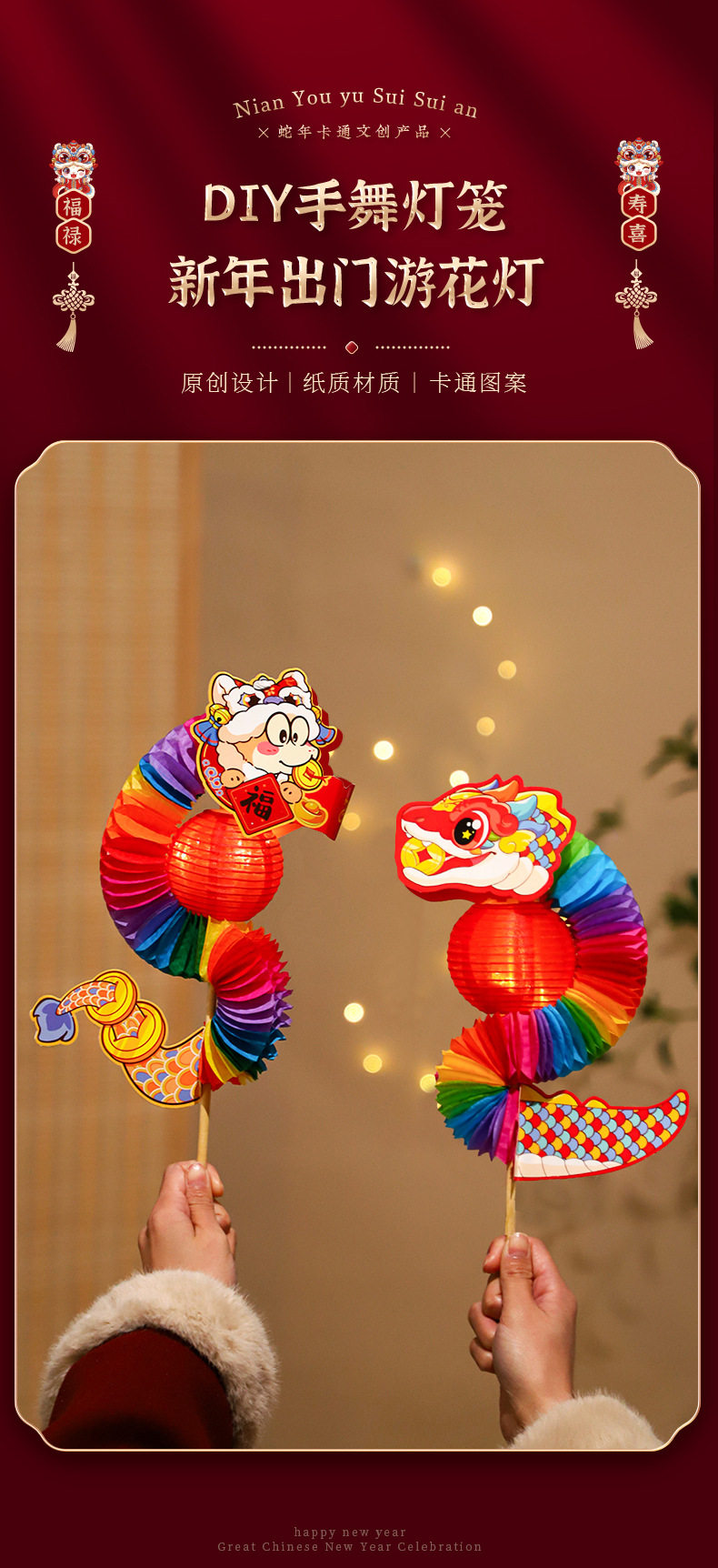 flip over snake lantern-the year of the snake to send chopsticks (red 024)