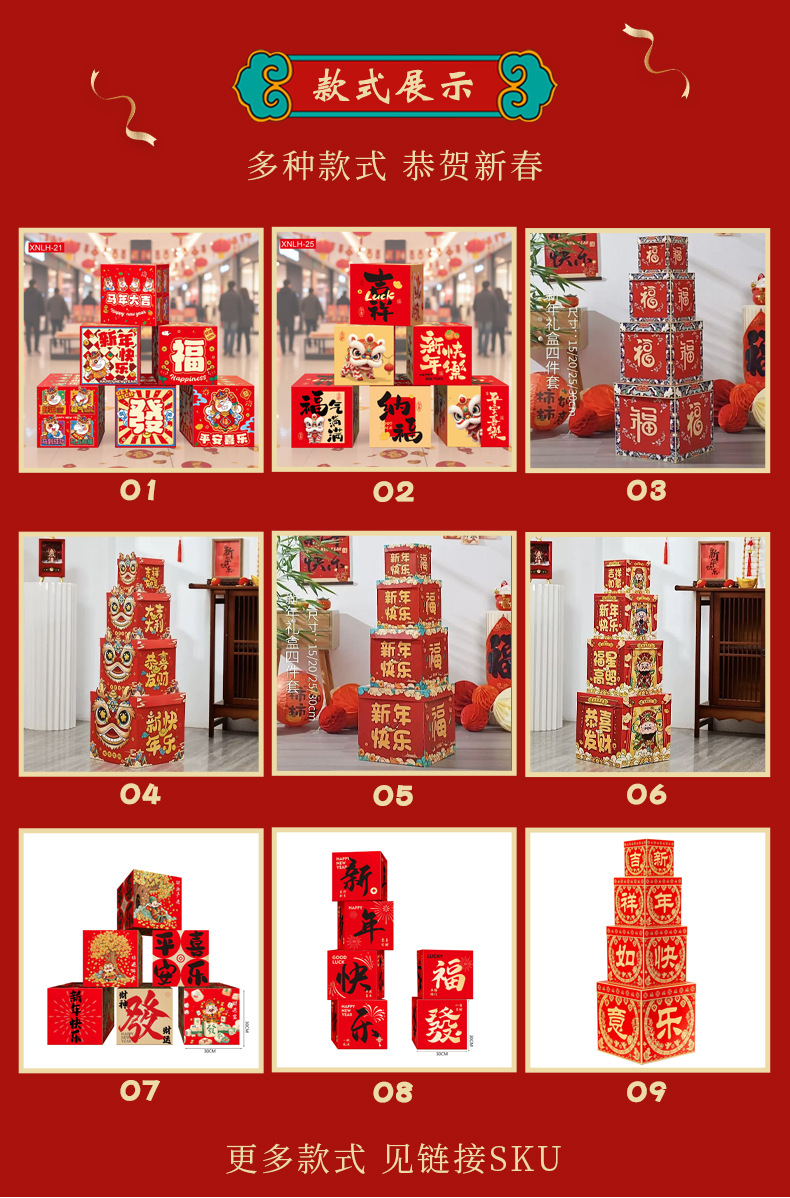 4 gift boxes new year blessing