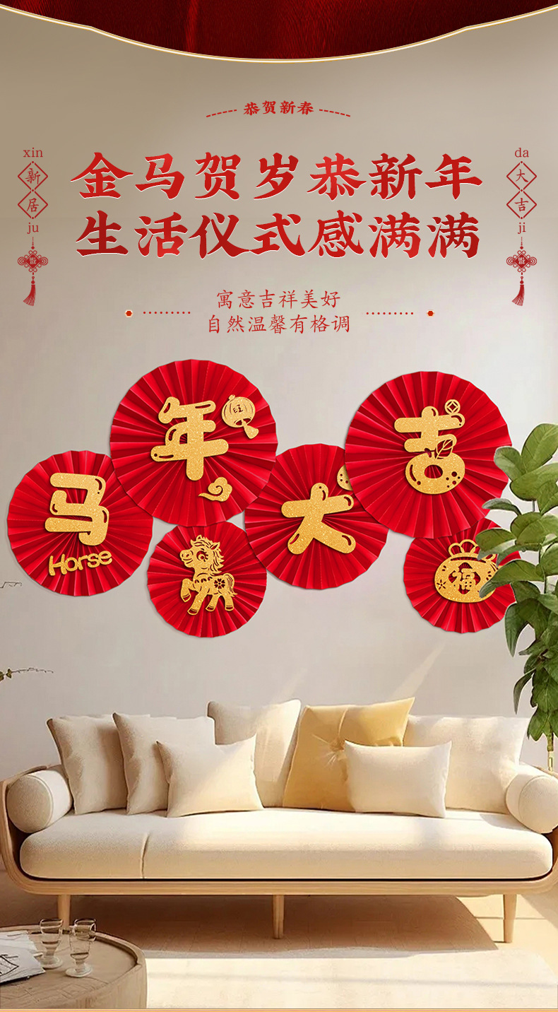 year of horse daji + grass fu character paper fan (free dispensing)