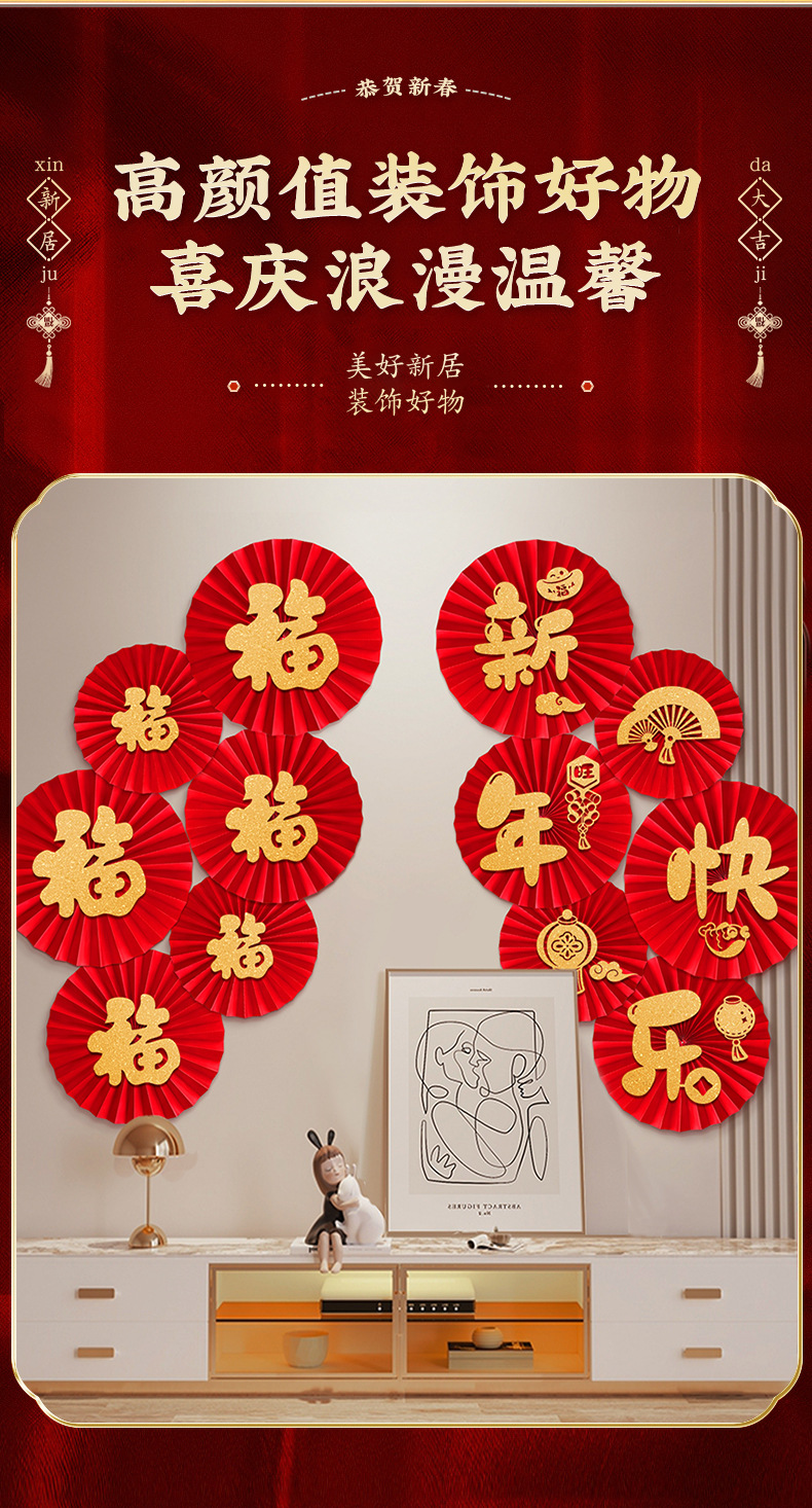 grass fu character + round fu character paper fan (free dispensing)