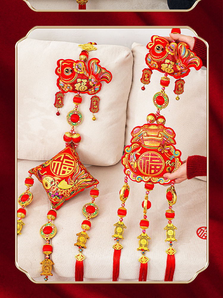 [fortune king is coming to town] curved fish hanging string + three tassels